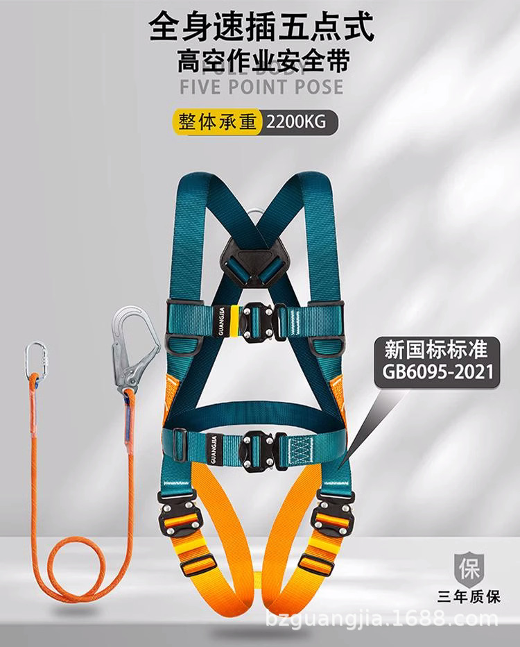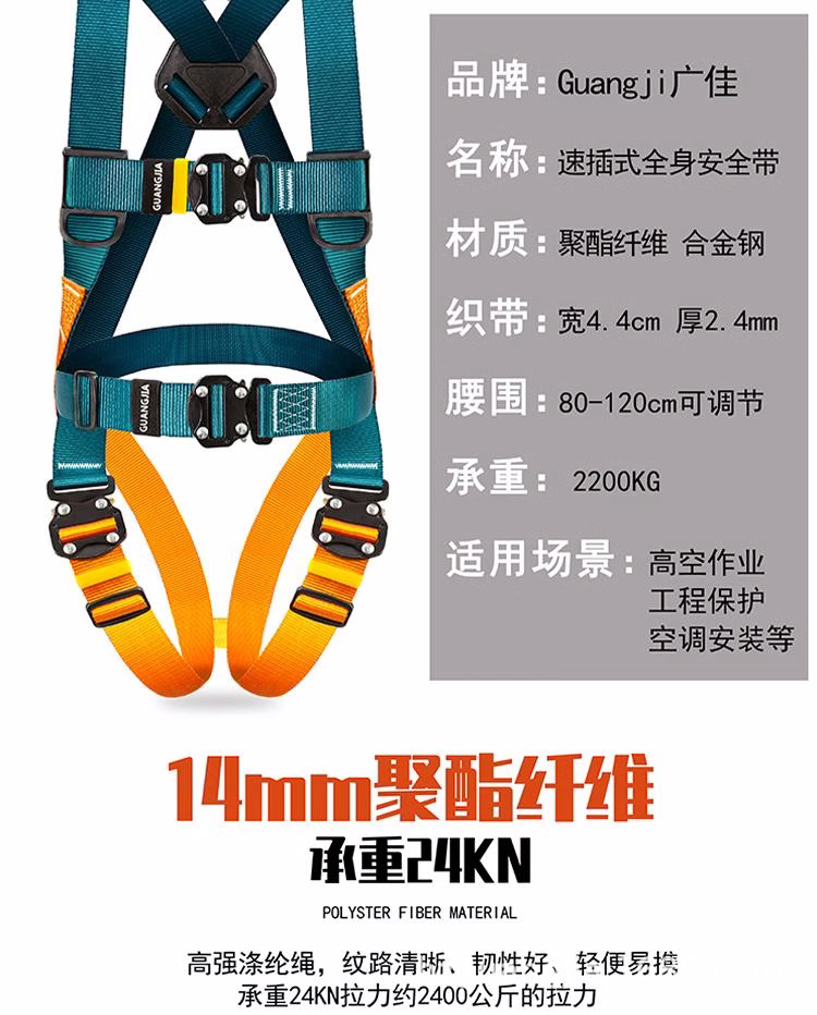 Guangjia 새로운 국가 표준 5 점 안전 벨트 고고도 작업 건물 낙하 방지 안전 벨트 안전 로프 빠른 삽입 세트