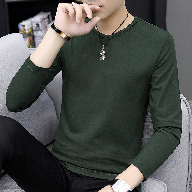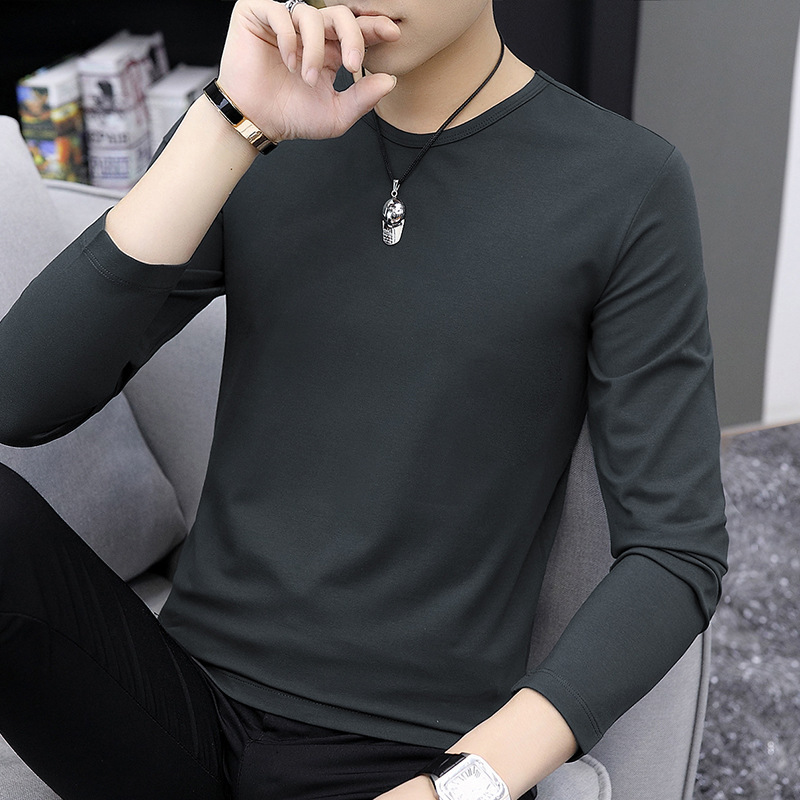 빨간 티셔츠 남자의 긴팔 둥근 목 생활 년 셔츠 단색 옷 가을베이스 셔츠 내복 가을 옷