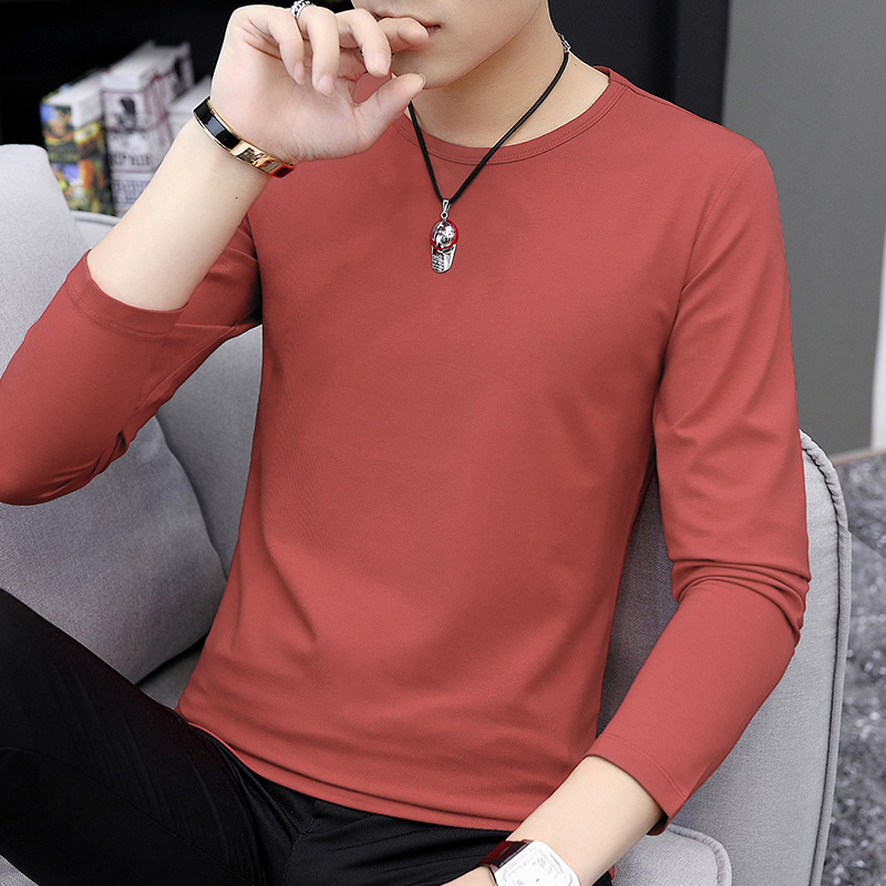 빨간 티셔츠 남자의 긴팔 둥근 목 생활 년 셔츠 단색 옷 가을베이스 셔츠 내복 가을 옷스토어 가기