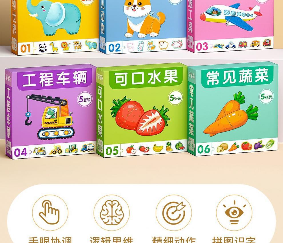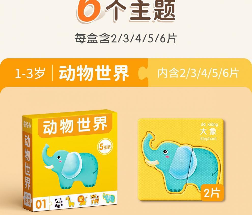 어린이 퍼즐 2 세 아기 엔트리 레벨 일치하는 장난감 동물 퍼즐 3 ~ 6 세 조기 교육 지능 개발