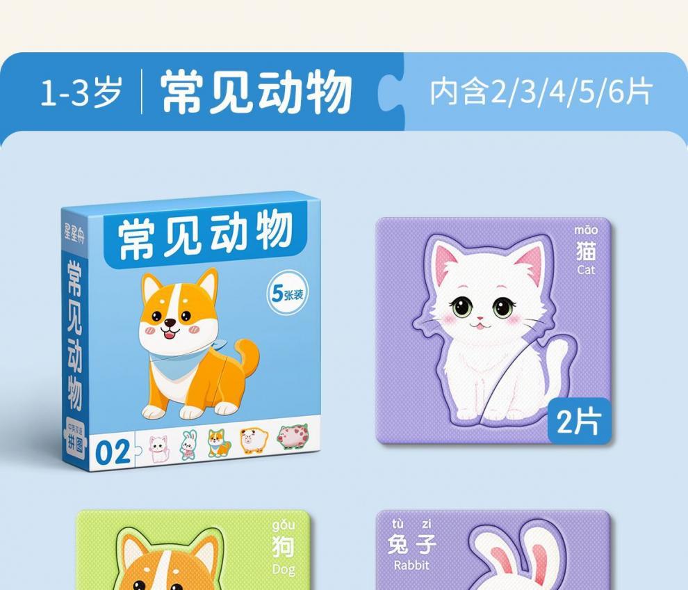 어린이 퍼즐 2 세 아기 엔트리 레벨 일치하는 장난감 동물 퍼즐 3 ~ 6 세 조기 교육 지능 개발스토어 가기