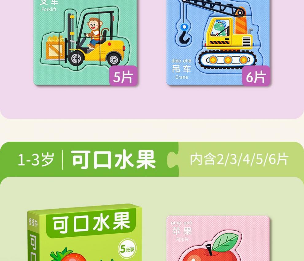 • 유아 퍼즐 [쉬운 것부터 어려운 것까지/단계별] - 5개들이 1박스 [먹을 수 있는 과일]