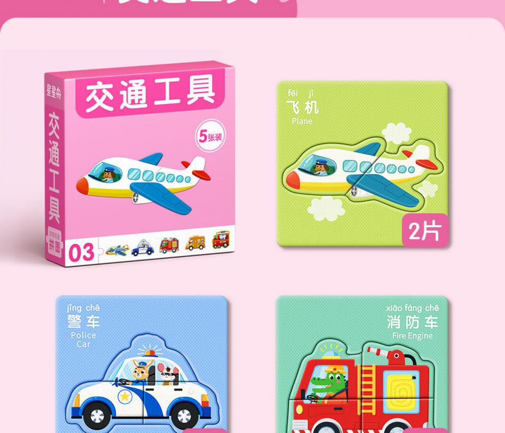 • 유아 퍼즐 [쉬운 것부터 어려운 것까지/단계별] - 5개들이 1박스 [교통수단]