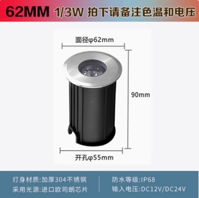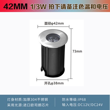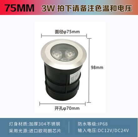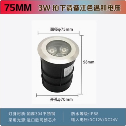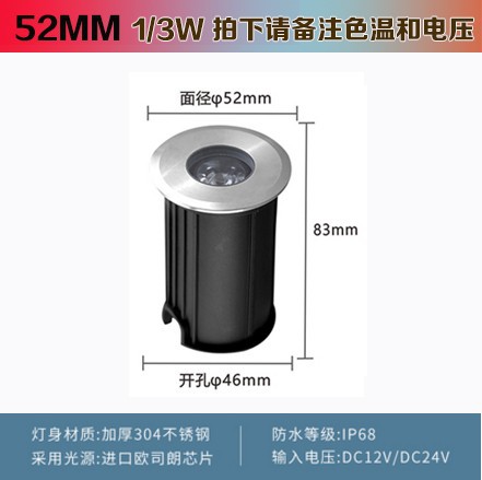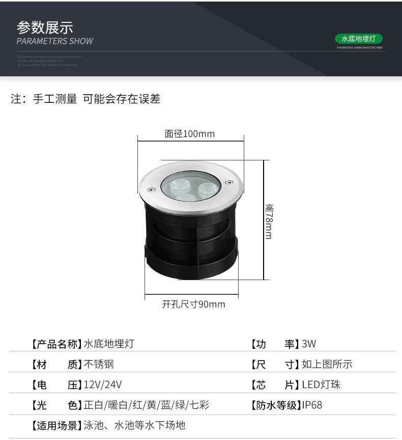 Led 수중 매장 된 빛 1W3W 내장 수중 스포트라이트 물고기 풀 바닥 스포트라이트 12V24V 수중 조명