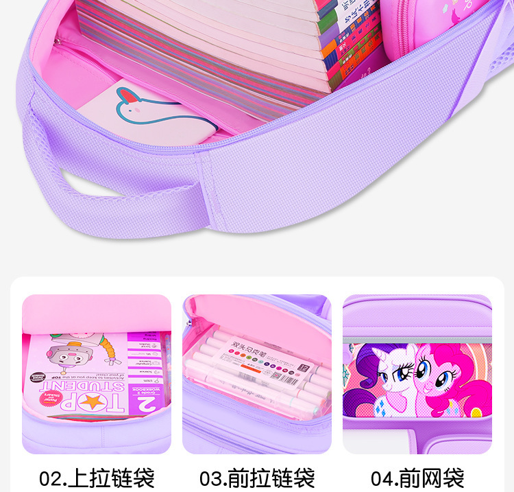 초등학생 여아용 책가방 1-3-6학년 대용량 백팩 예쁜 마이 리틀 포니 얼룩 방지 어린이 부담 경감