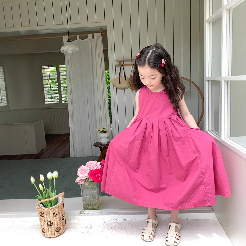 여자 서양식 민소매 공주 원피스 2025 여름 어린이 아기 면 큰 치마 베살 원피스 중간 길이스토어 가기