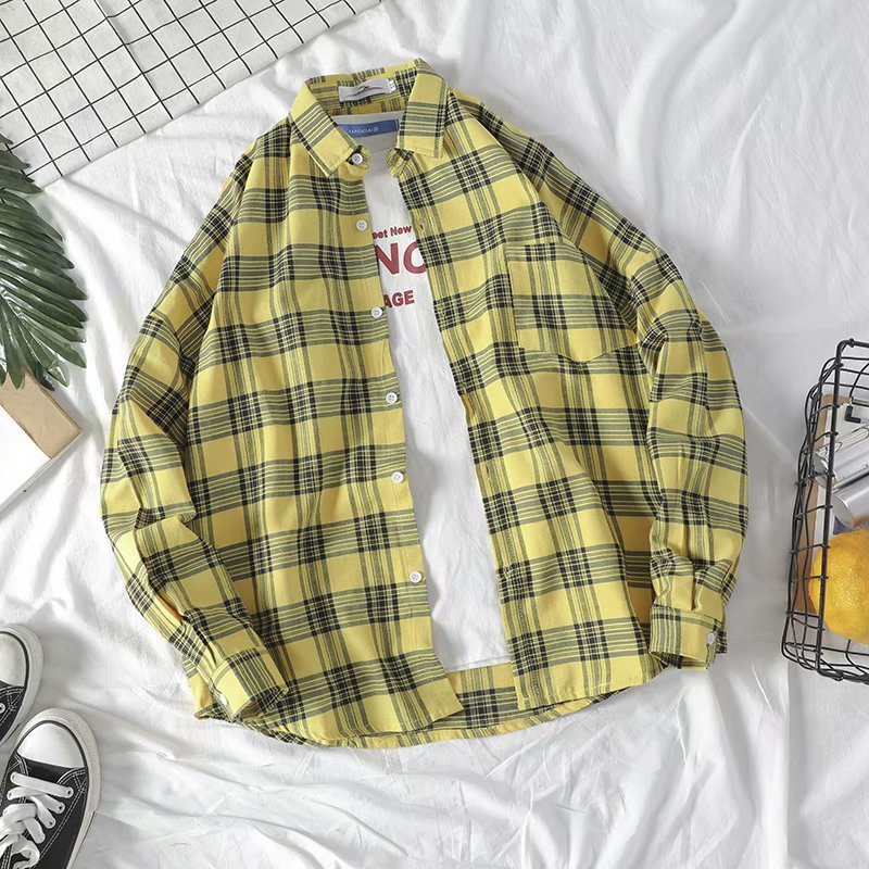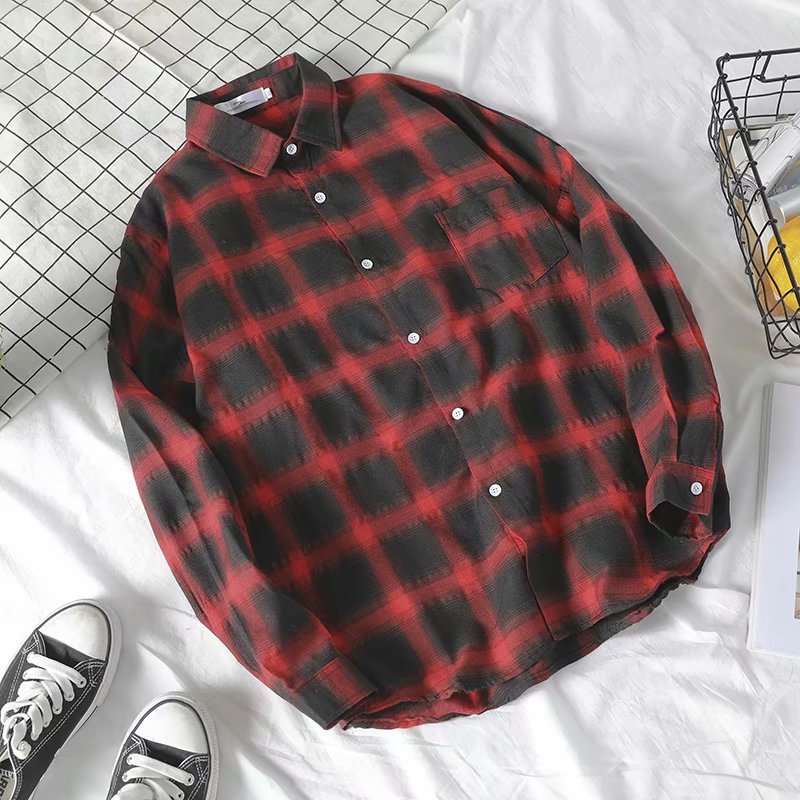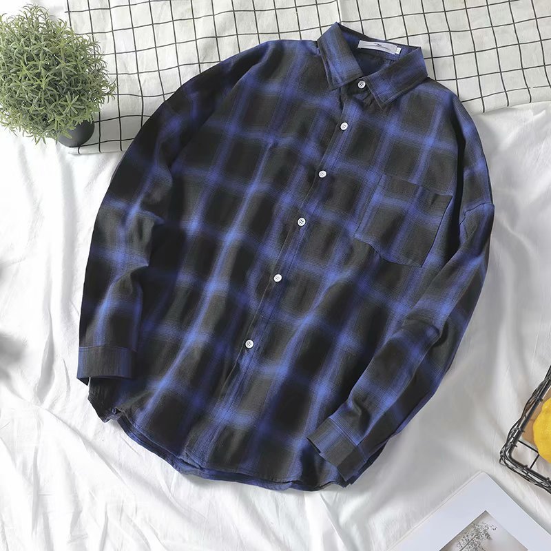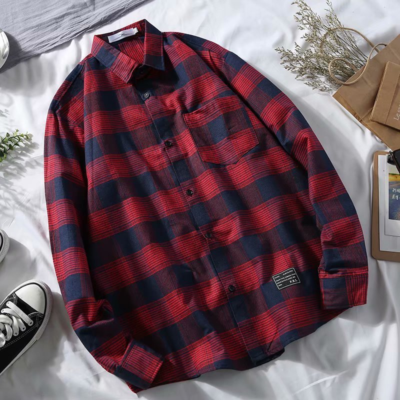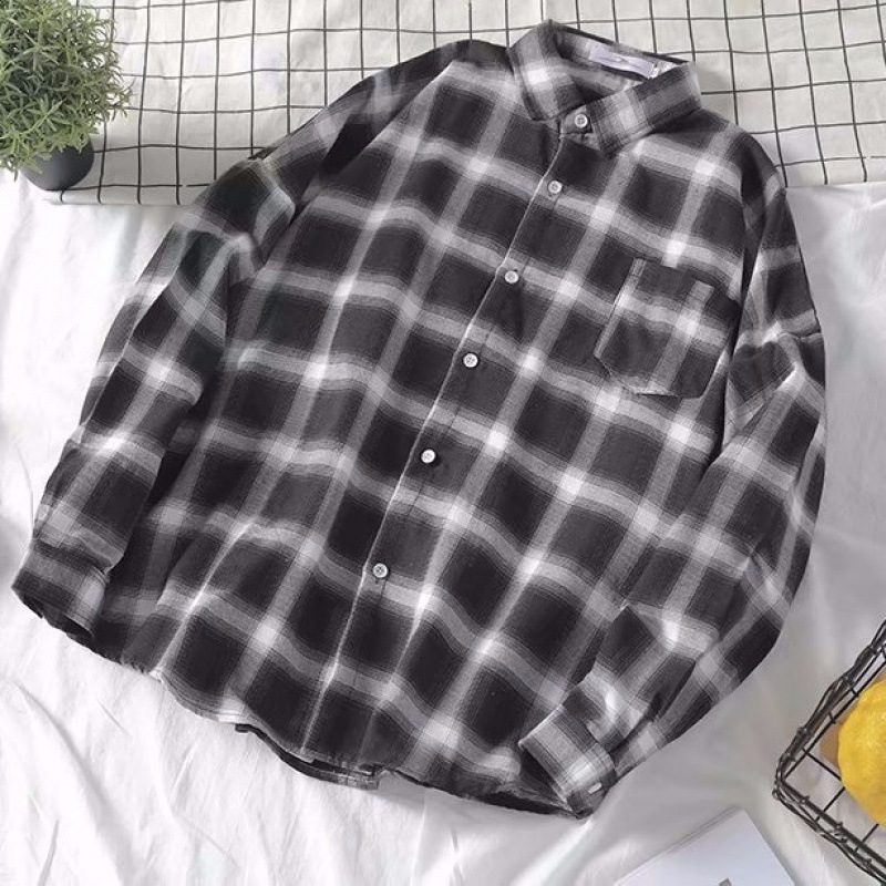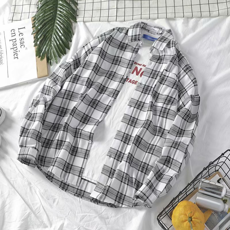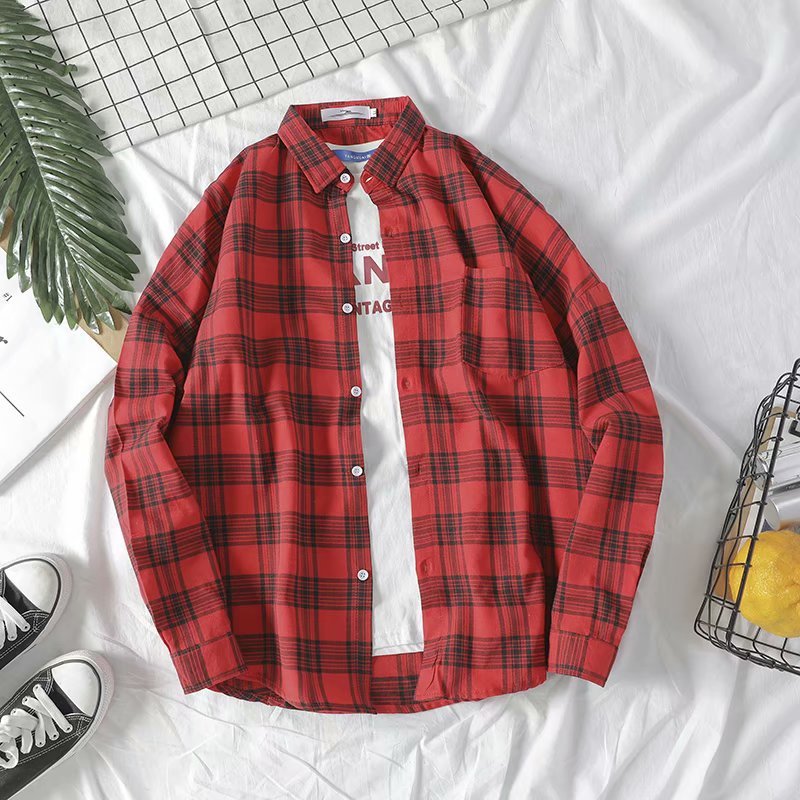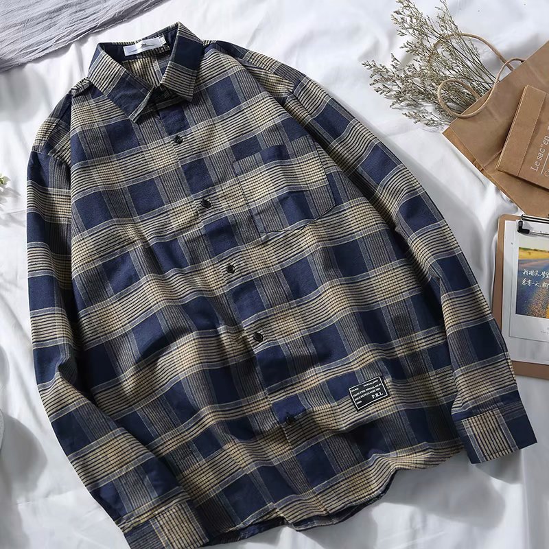 Lj新款复古格子衬衫男宽松长袖春季韩版潮流学生帅气衬衣百搭薄外스토어 가기