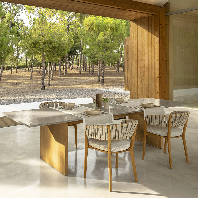 야외 솔리드 우드 다이닝 테이블 및 의자 방비 빌라 호텔 야외 레스토랑 등나무 티크 1 테이블 및 6 개의 의자 안뜰