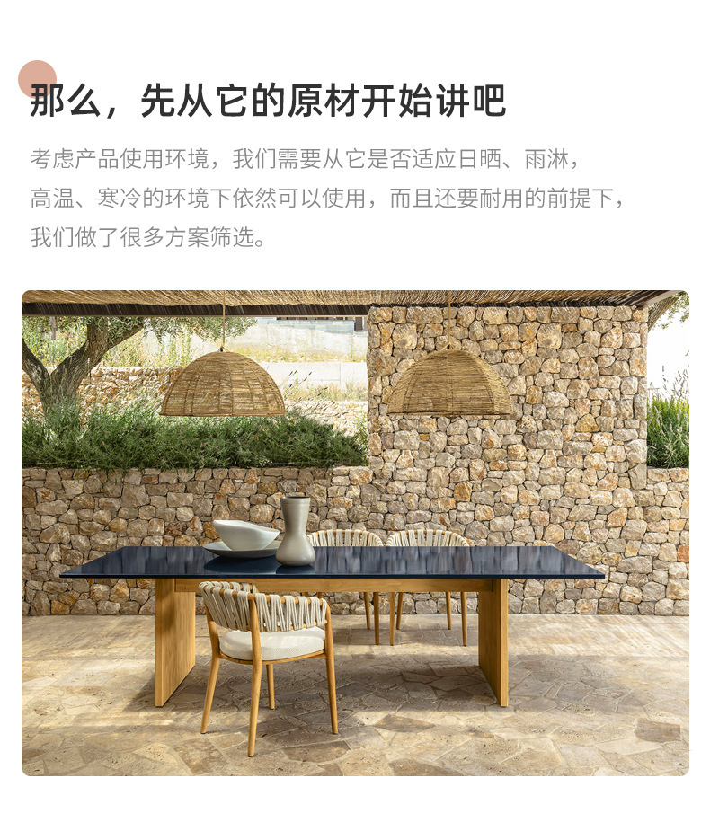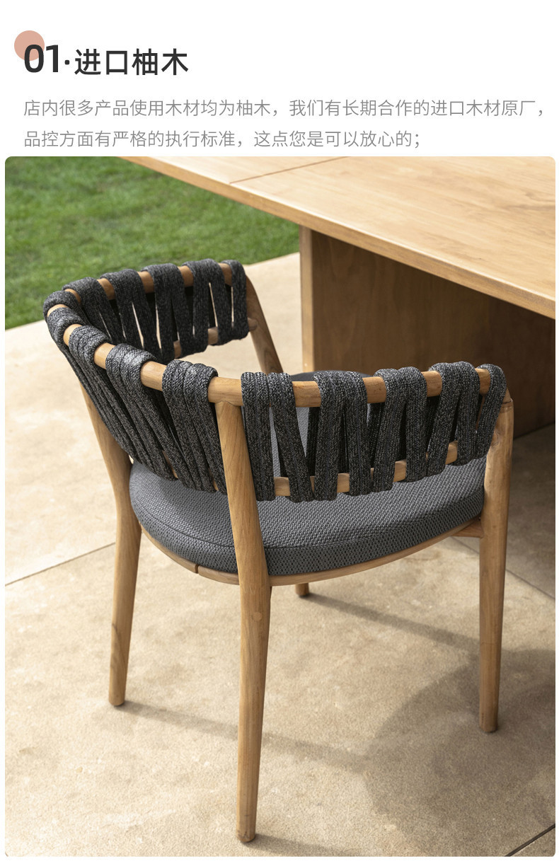 야외 솔리드 우드 다이닝 테이블 및 의자 방비 빌라 호텔 야외 레스토랑 등나무 티크 1 테이블 및 6 개의 의자 안뜰스토어 가기