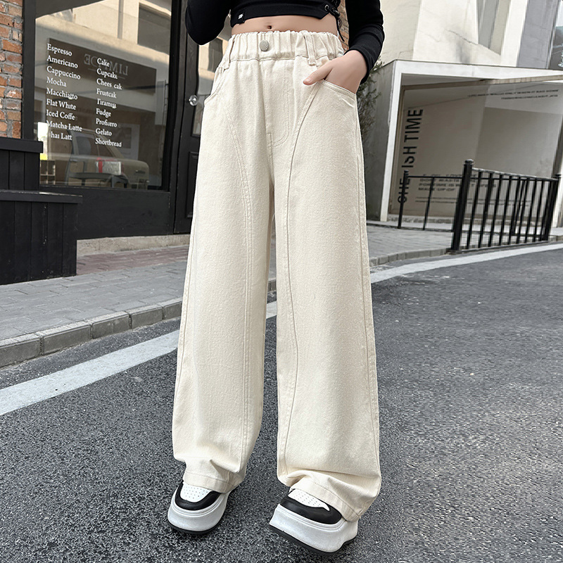 소녀 봄 바지 2025 새로운 대형 어린이 봄 바지 어린이 봄과 가을 소녀 스트레이트 다리 바지 넓은 다리 바지