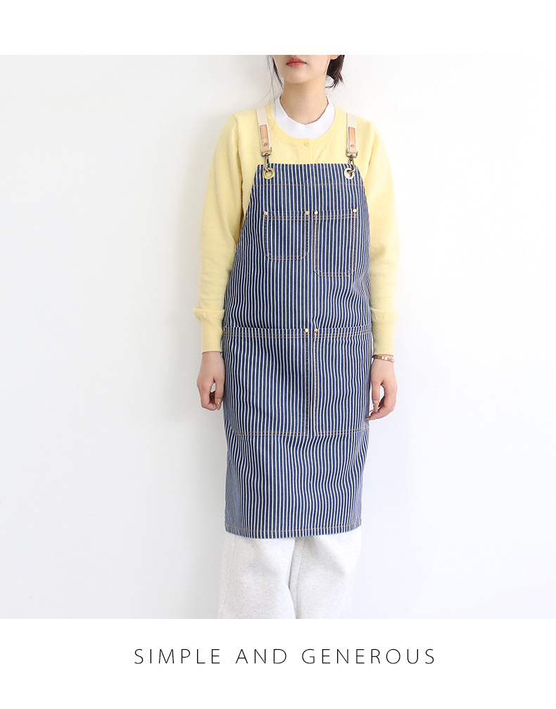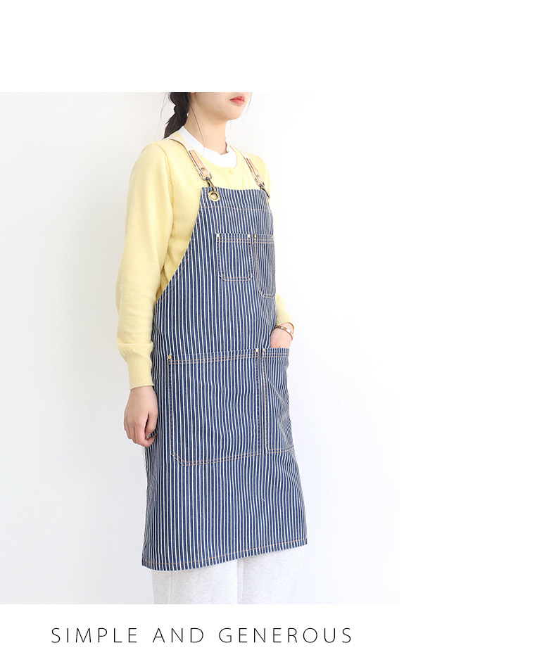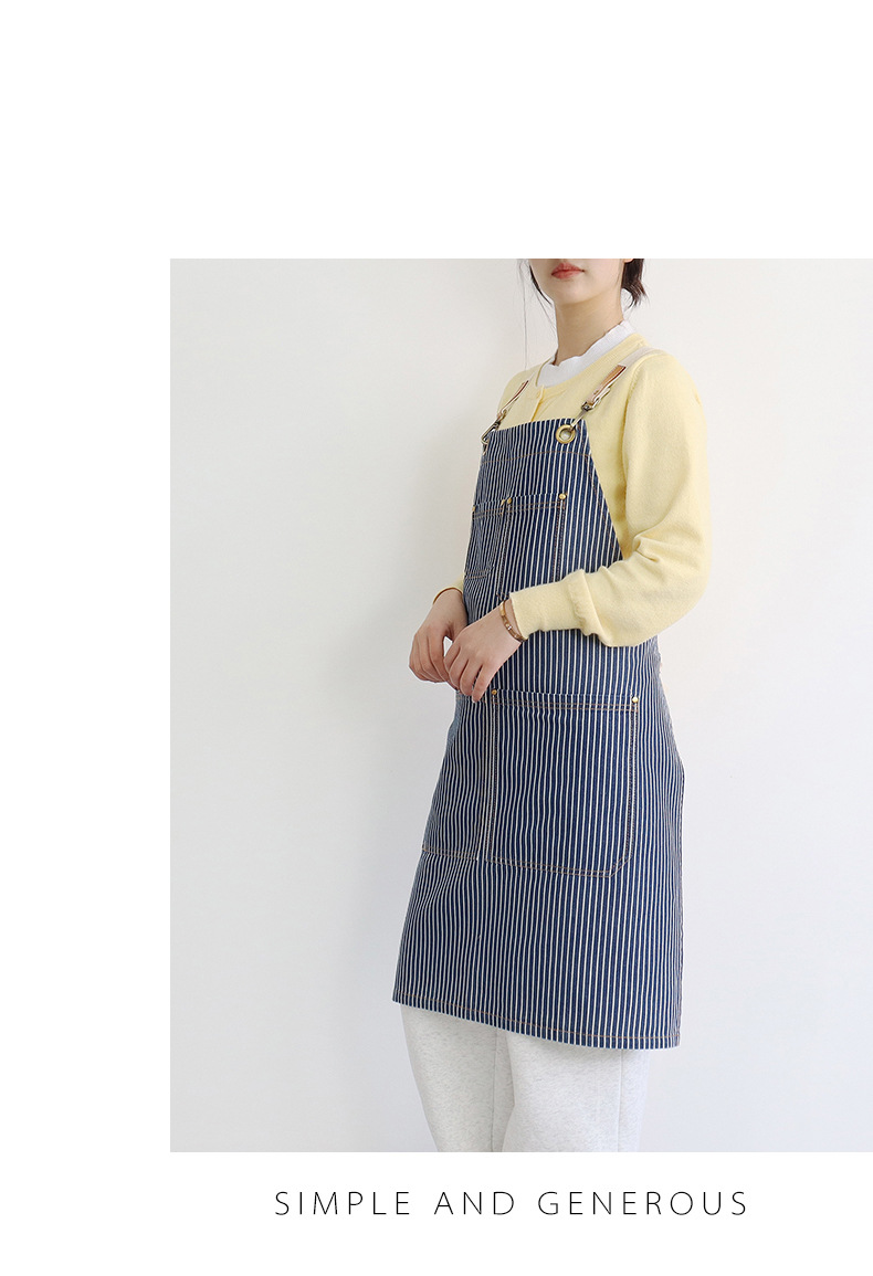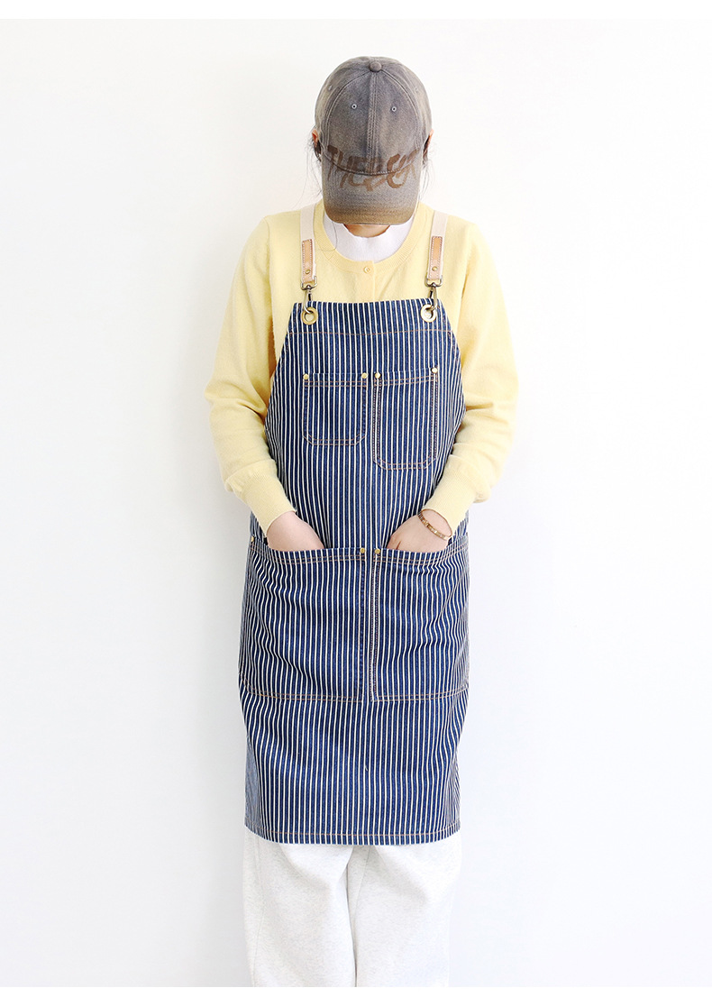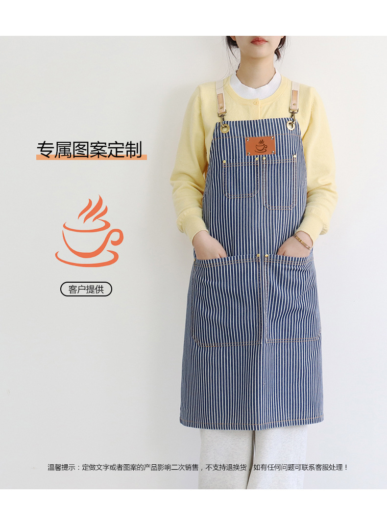 공장 직접 데님 줄무늬 앞치마 취사 카페 우유 차 케이크 가게 허리 작업 옷 로고 인쇄스토어 가기