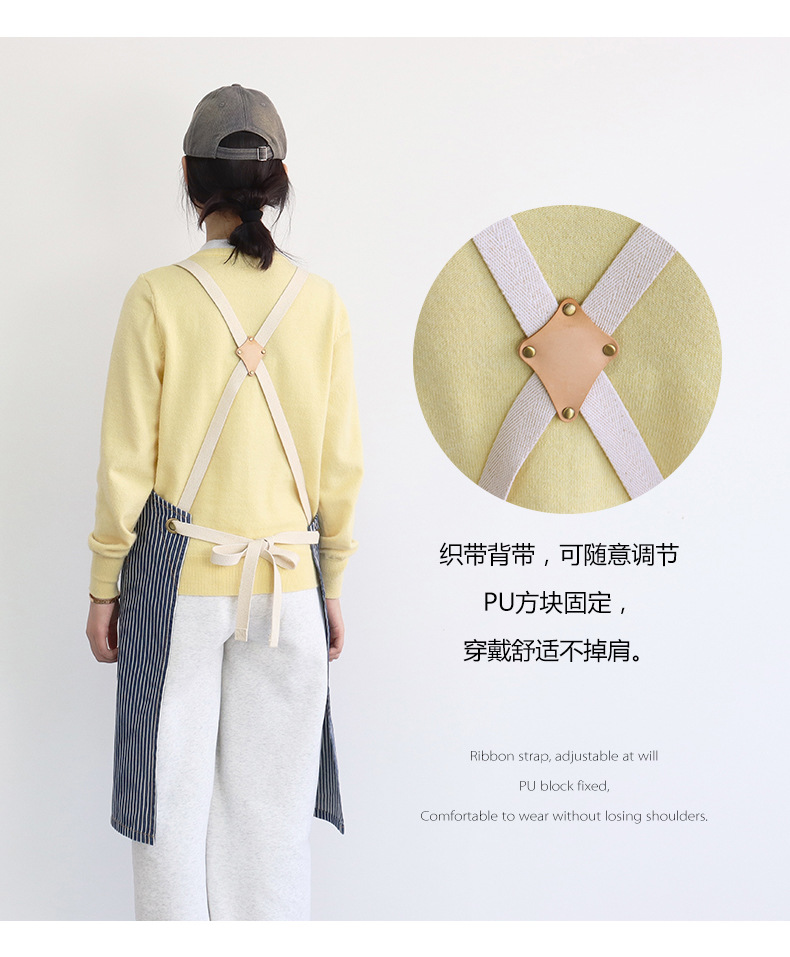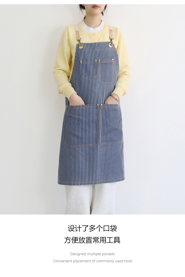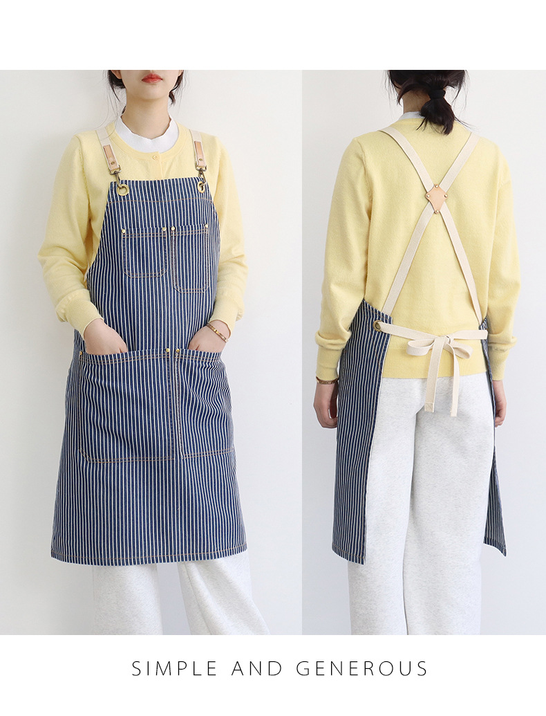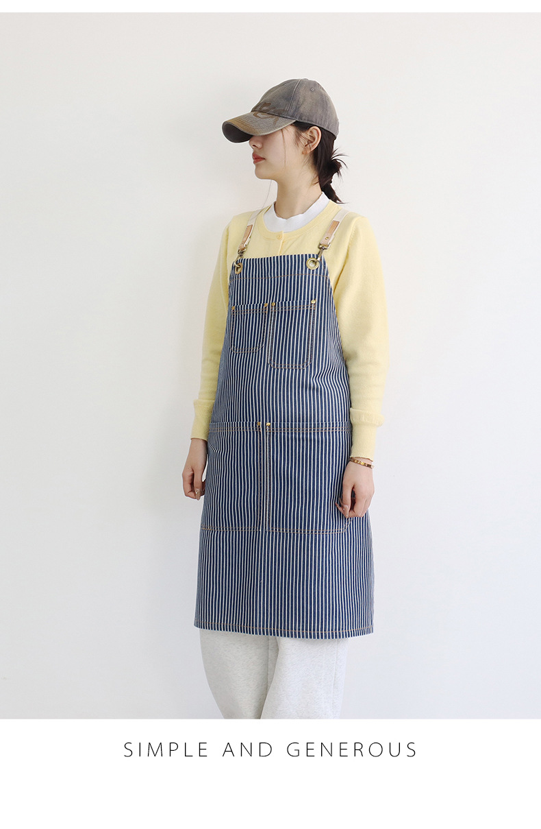 공장 직접 데님 줄무늬 앞치마 취사 카페 우유 차 케이크 가게 허리 작업 옷 로고 인쇄스토어 가기