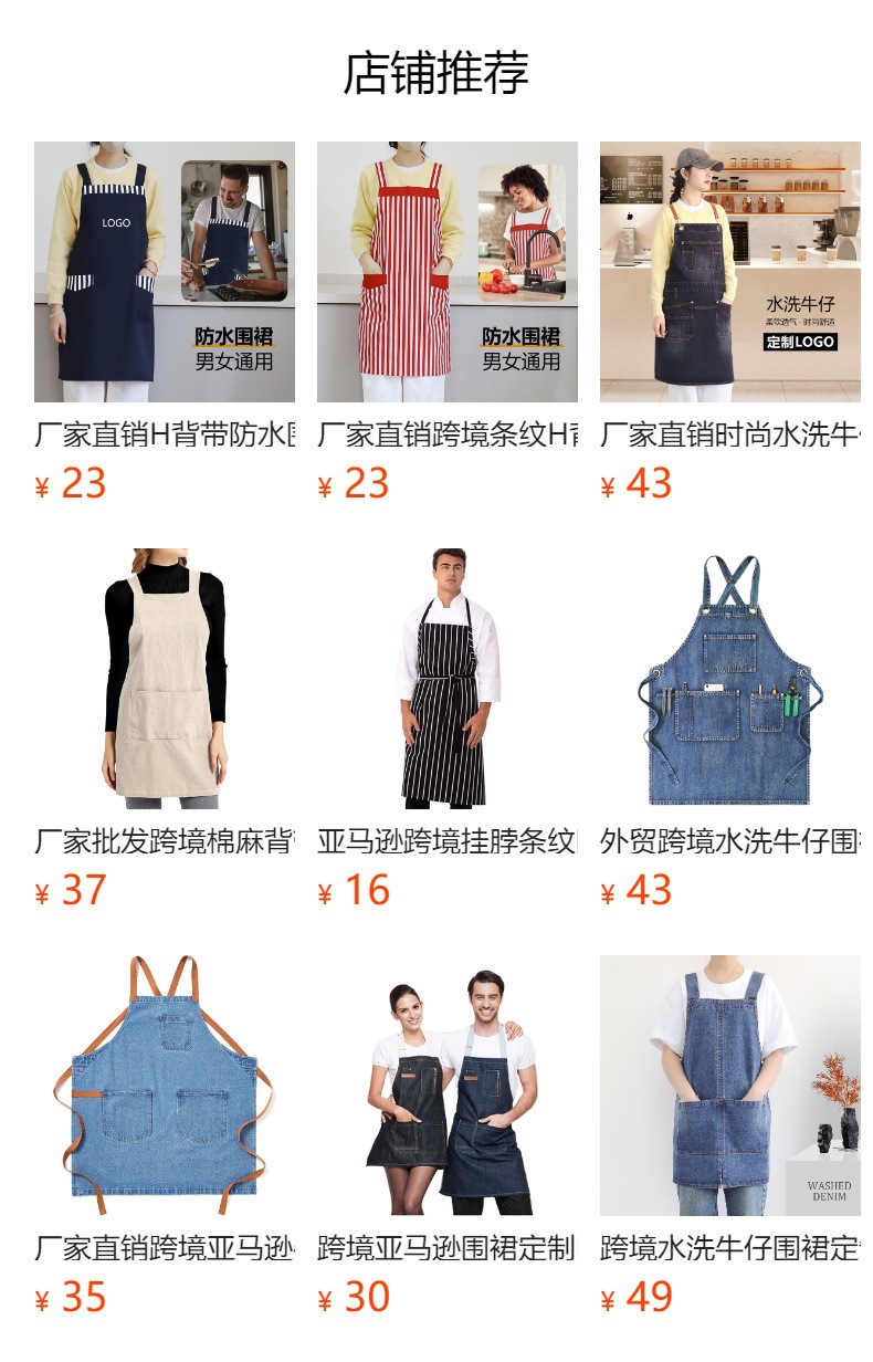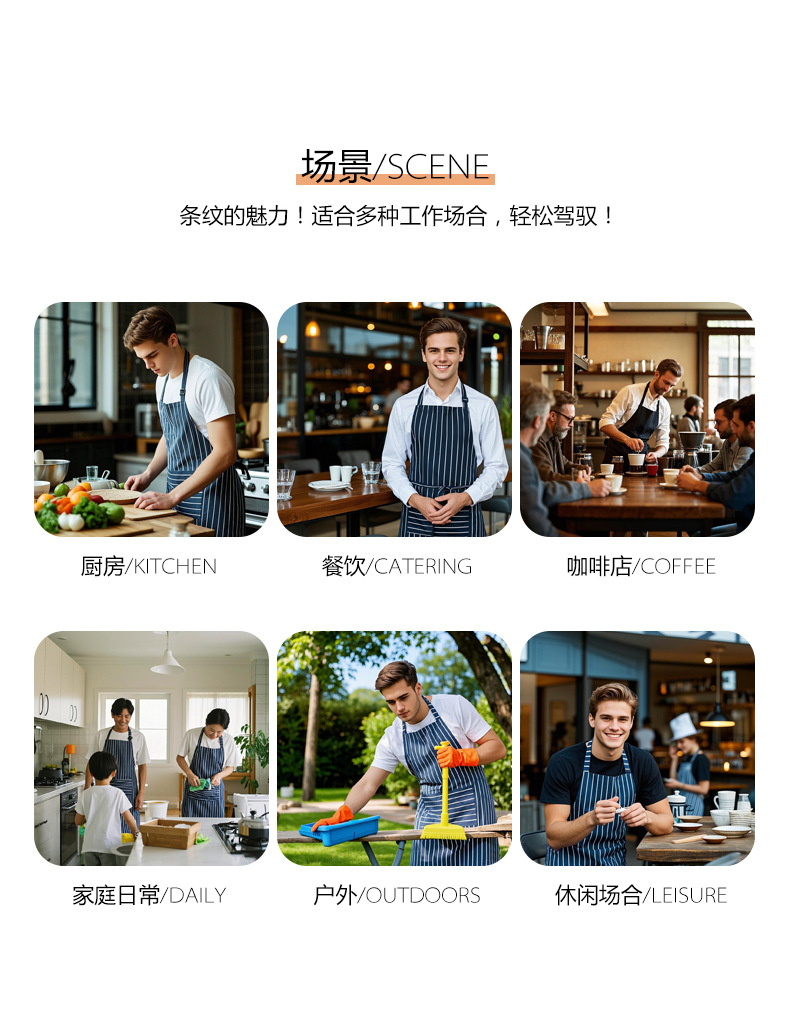 厂家直销牛仔条纹围裙餐饮专用咖啡店奶茶蛋糕店围裙定制logo印字
