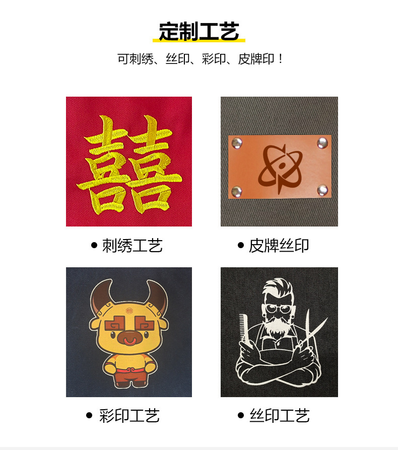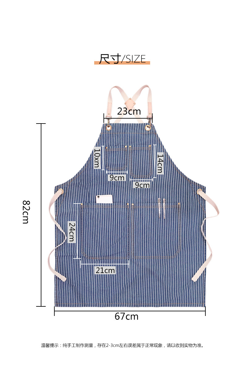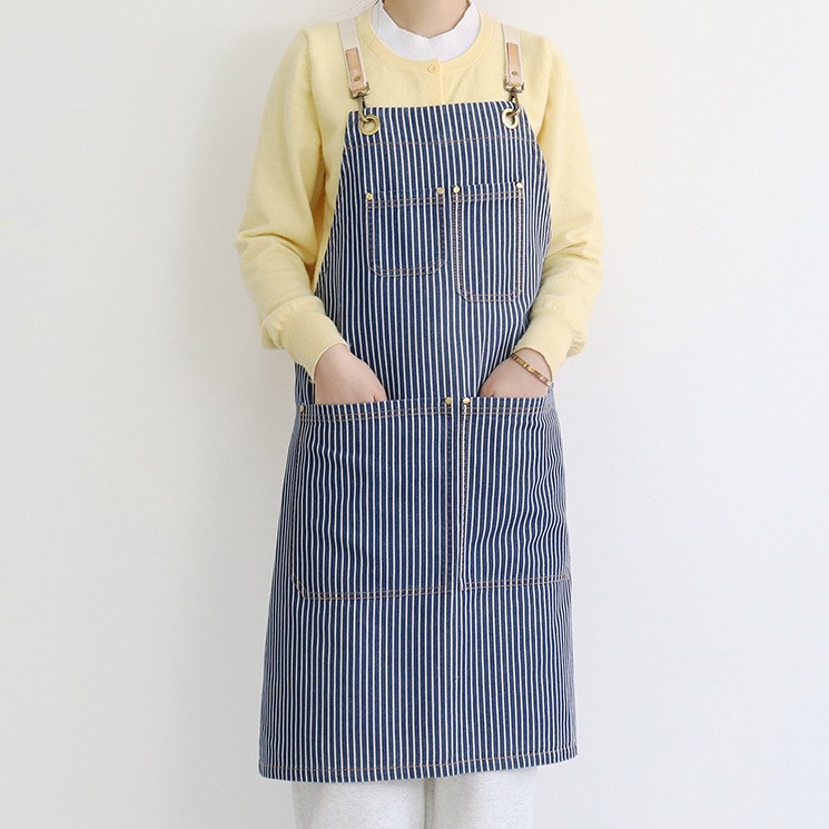 공장 직접 데님 줄무늬 앞치마 취사 카페 우유 차 케이크 가게 허리 작업 옷 로고 인쇄