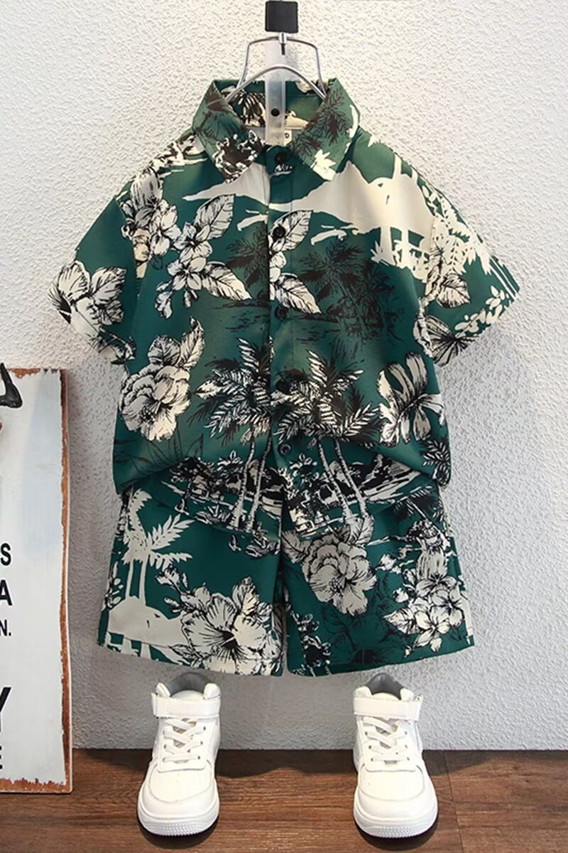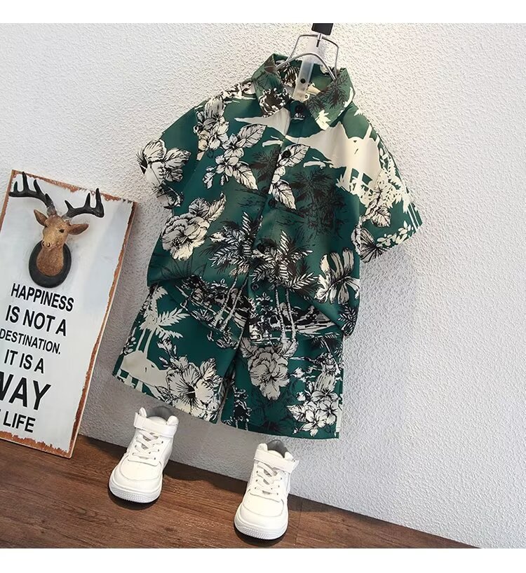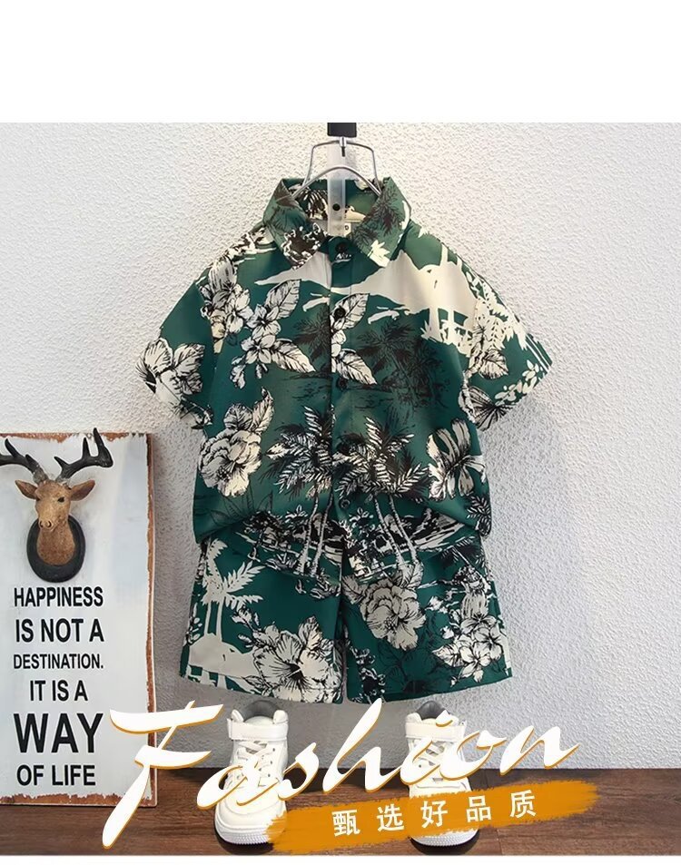 남자들의 여름 반팔 세트 잘 생긴 2025 년 새 여름 어린이 서양식 아이스 실크 니퍼 잘 생긴 투피스 셔츠스토어 가기
