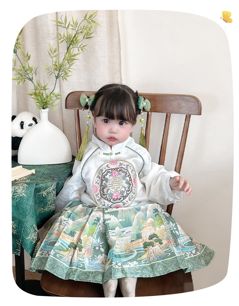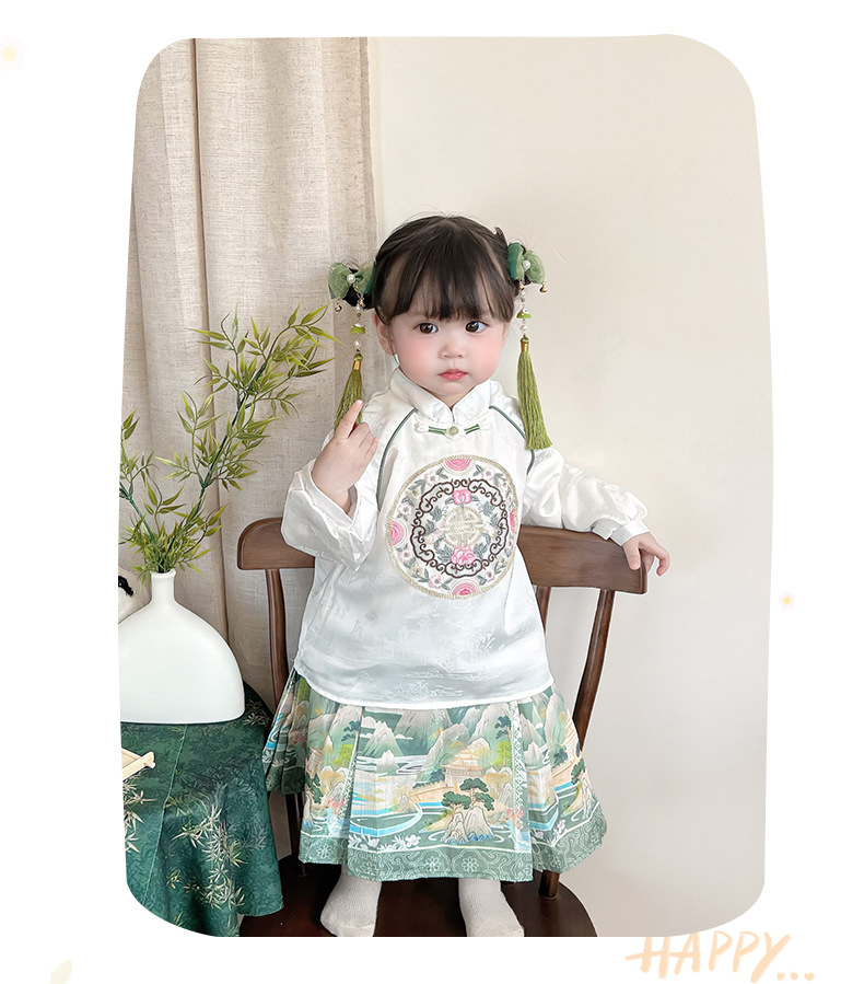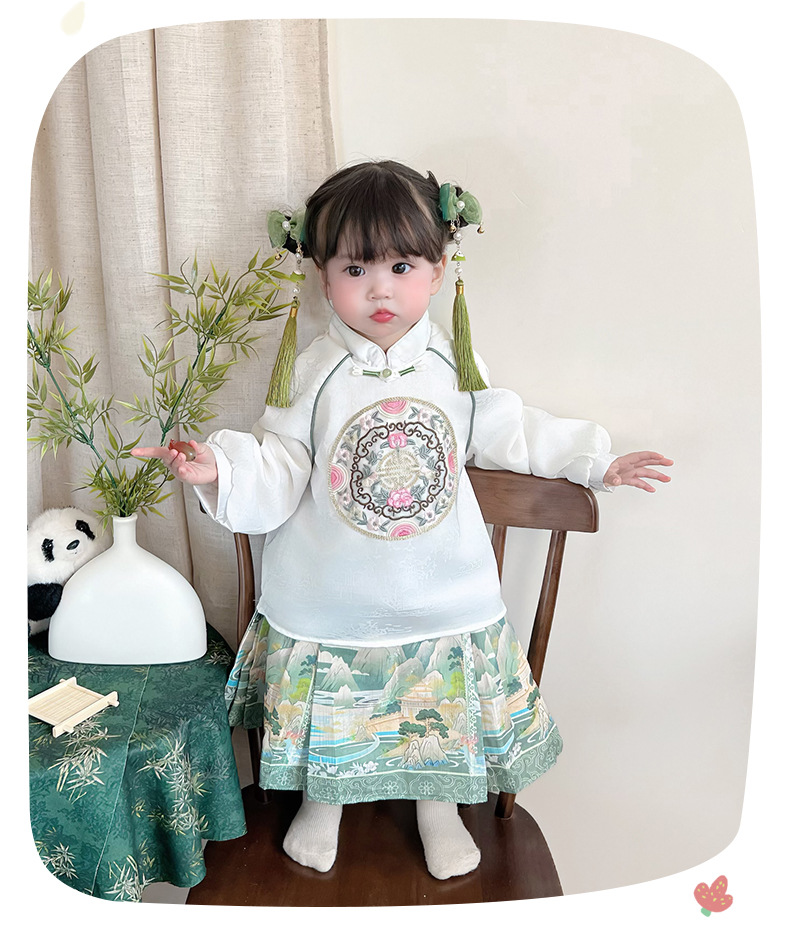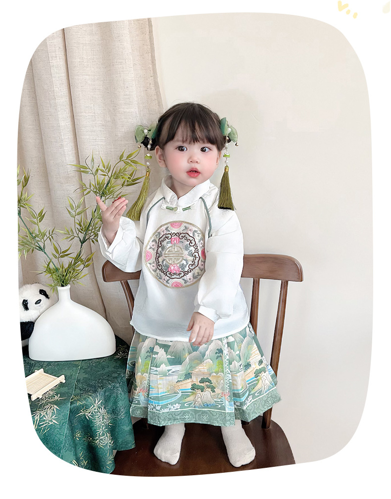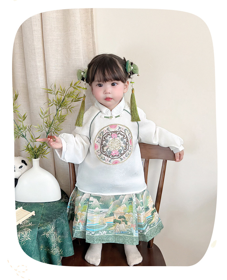 2025 소녀의 고대 스타일 세트 봄과 가을 말-국수 원피스 투피스 세트 3555 아기 소녀의 중국 스타일 자수 한푸스토어 가기
