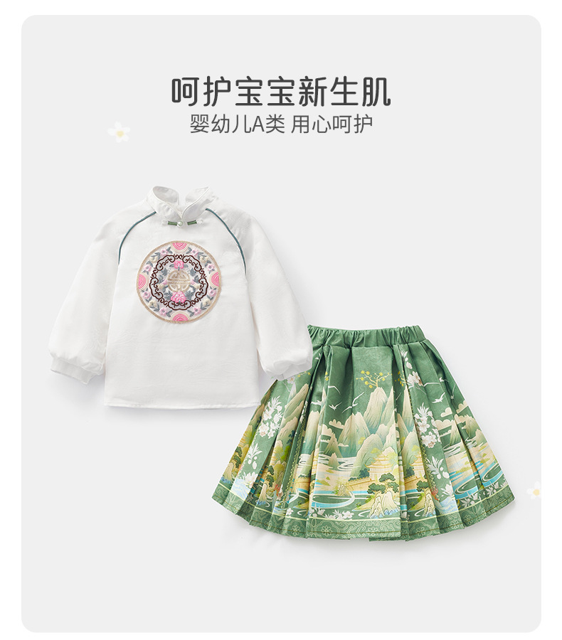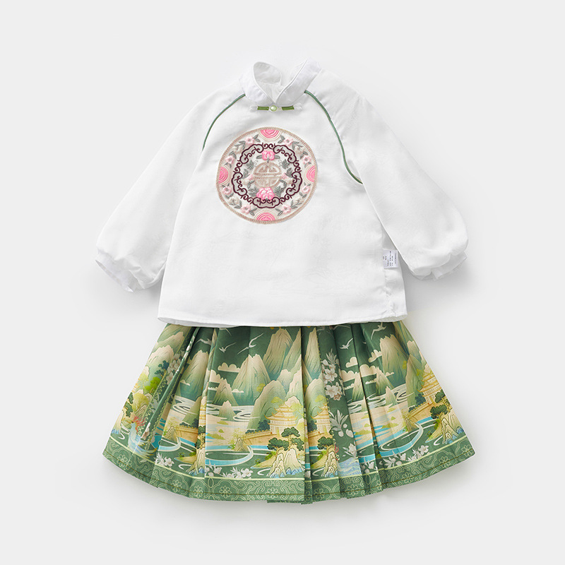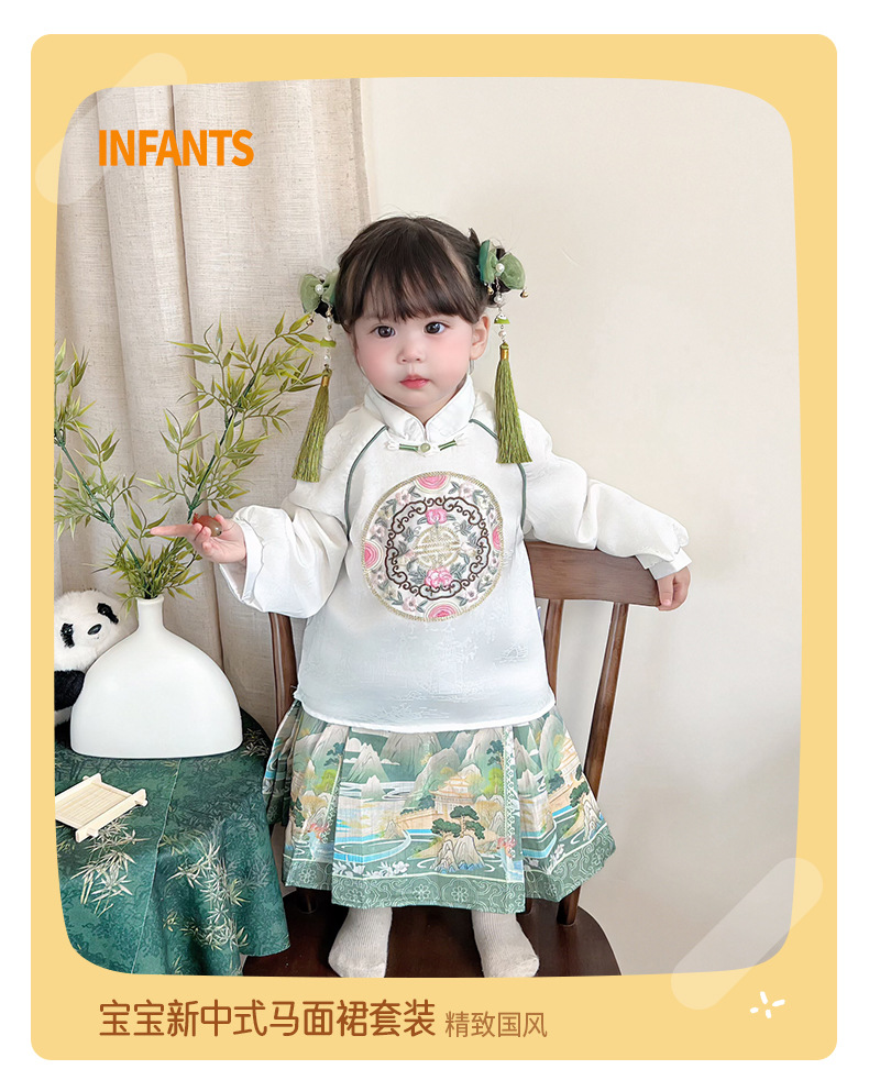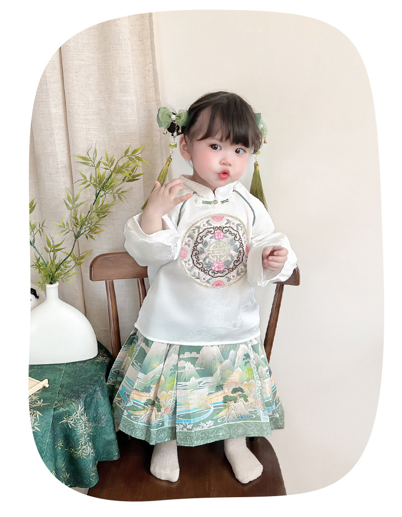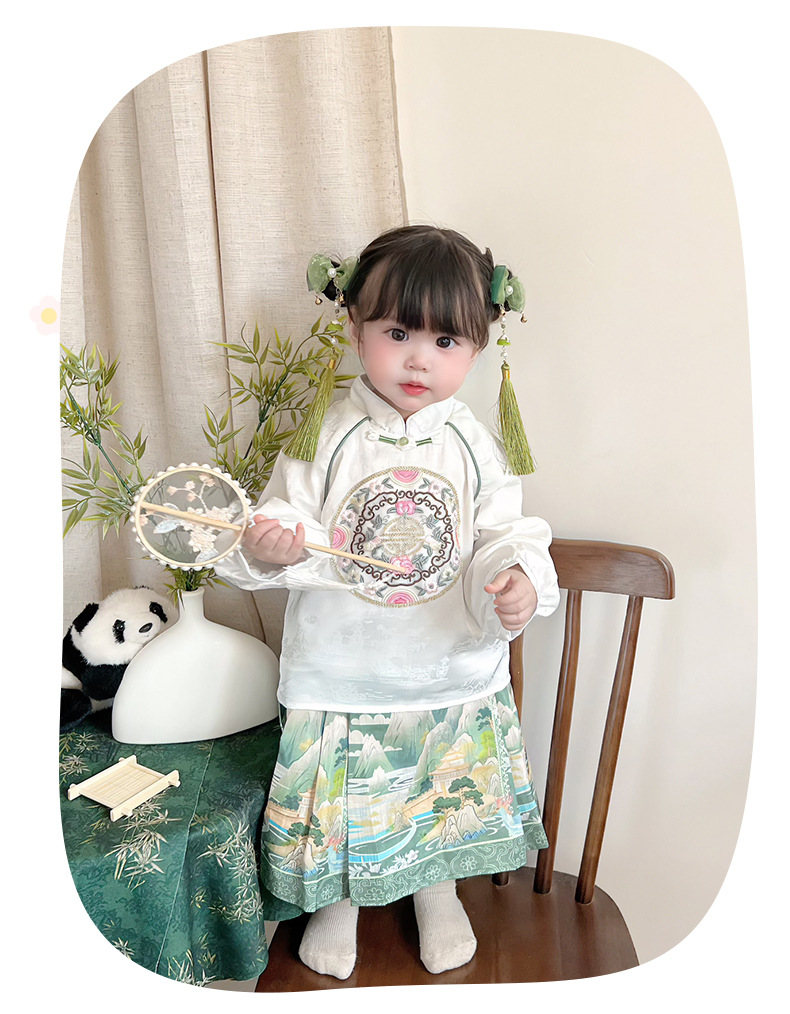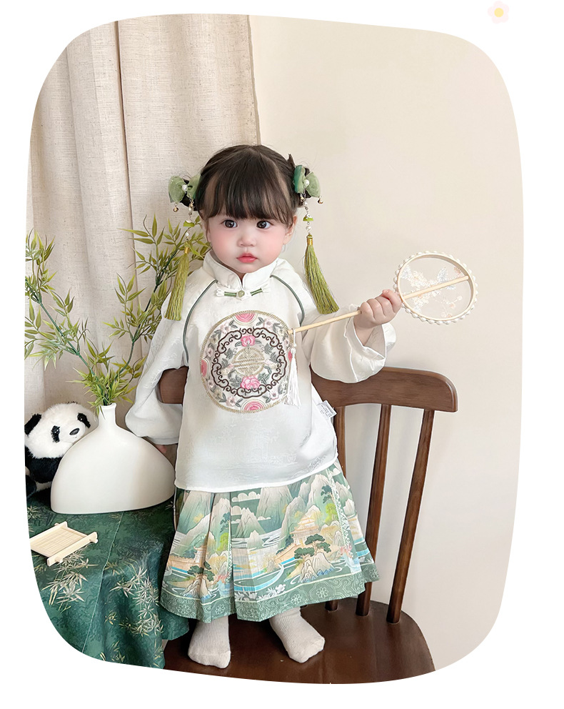 2025 소녀의 고대 스타일 세트 봄과 가을 말-국수 원피스 투피스 세트 3555 아기 소녀의 중국 스타일 자수 한푸스토어 가기