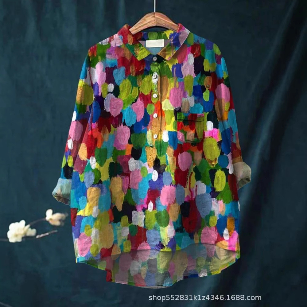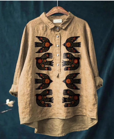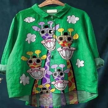 2025 새로운 독립 스테이션 유럽과 미국의 국경 간 캐주얼 긴팔 셔츠 동물 프린트 하와이 반팔