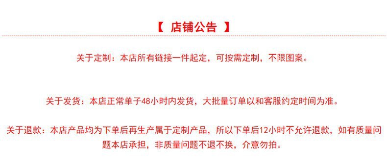 1、本店产品均支持一件定制,如链接没有您需要的图案,可以咨询客服提供需要定制的图案