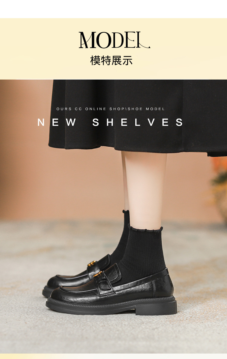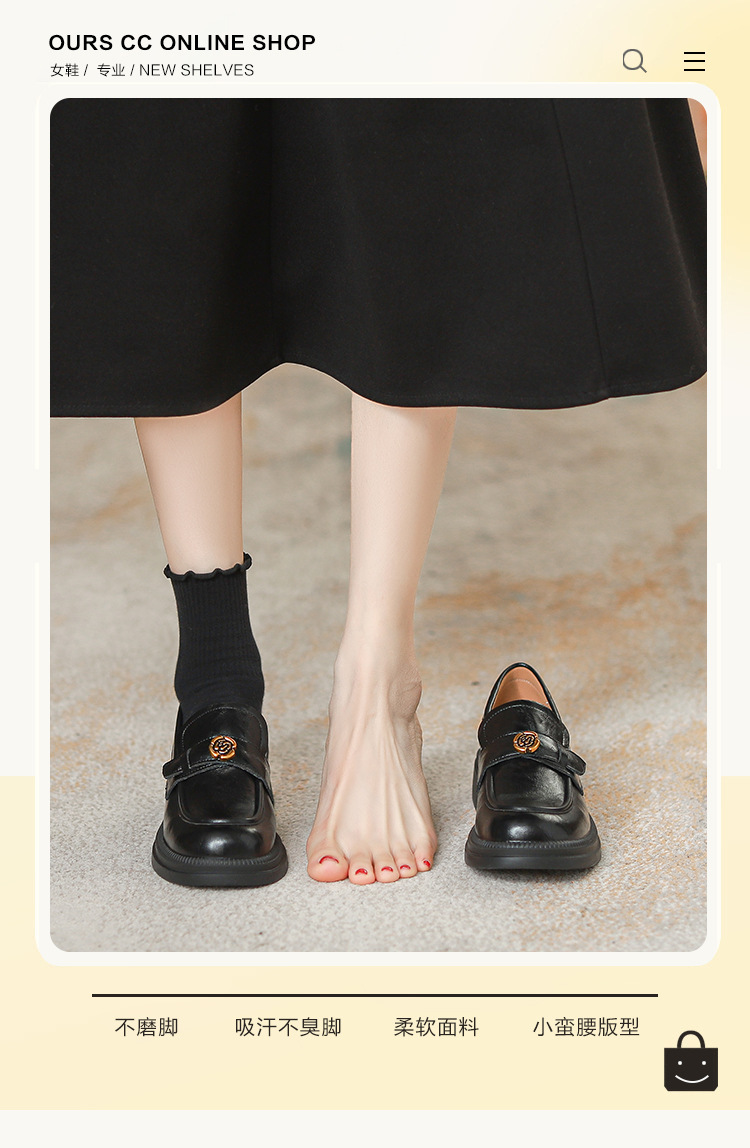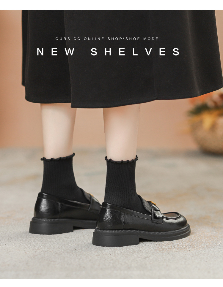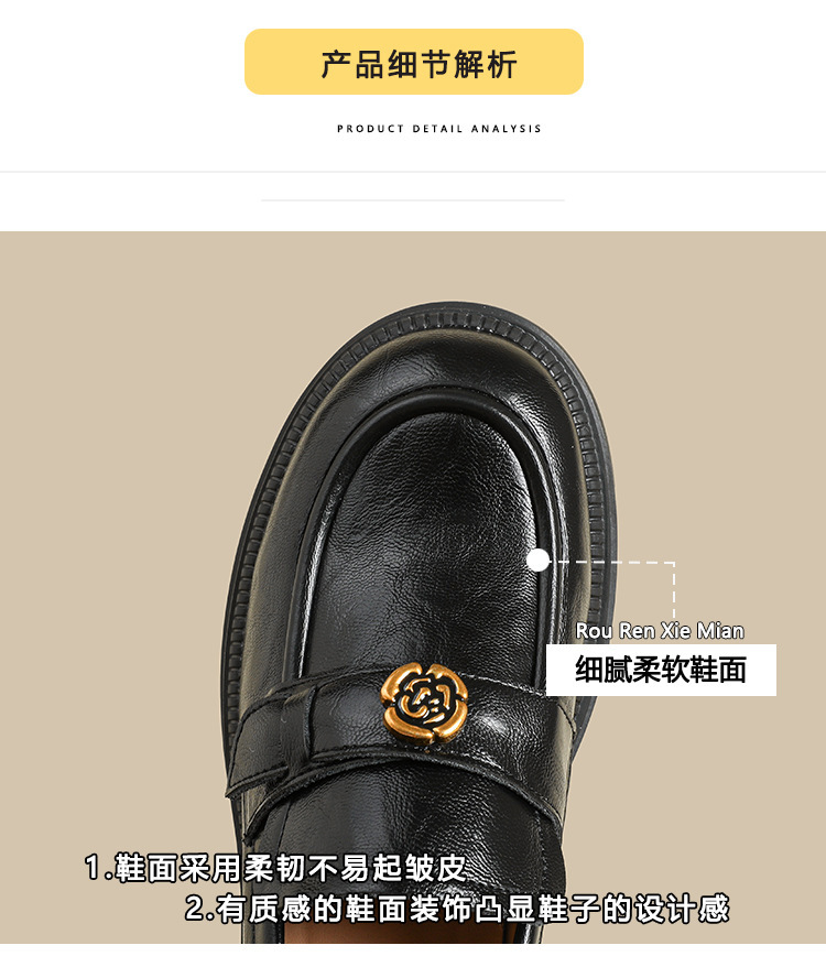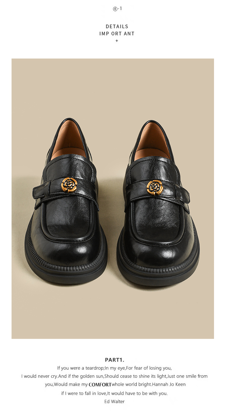 여성용 말가죽 질감의 블랙 카멜리아 로퍼 2025 신상 봄, 가을 밑창 영국 스타일 복고풍 작은 가죽 신발스토어 가기