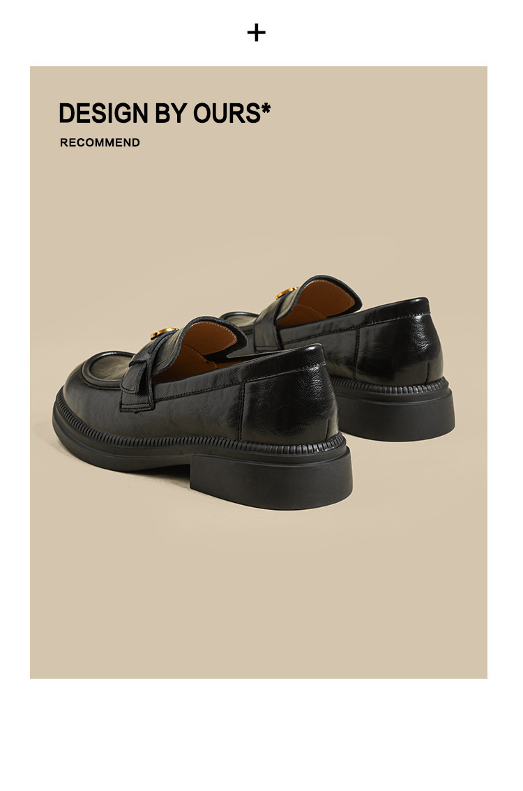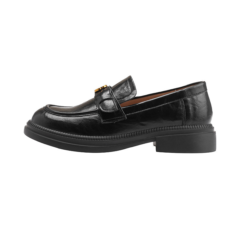 여성용 말가죽 질감의 블랙 카멜리아 로퍼 2025 신상 봄, 가을 밑창 영국 스타일 복고풍 작은 가죽 신발