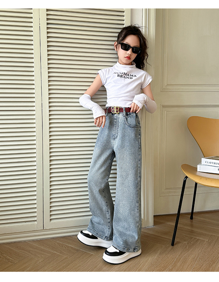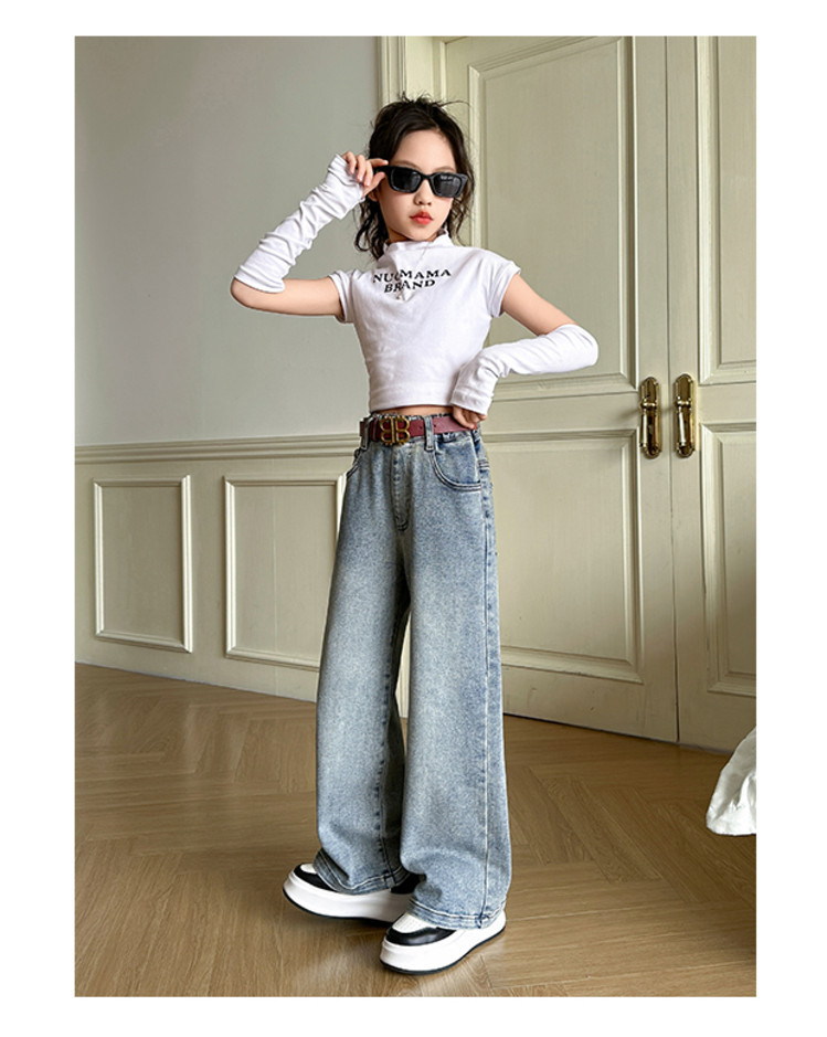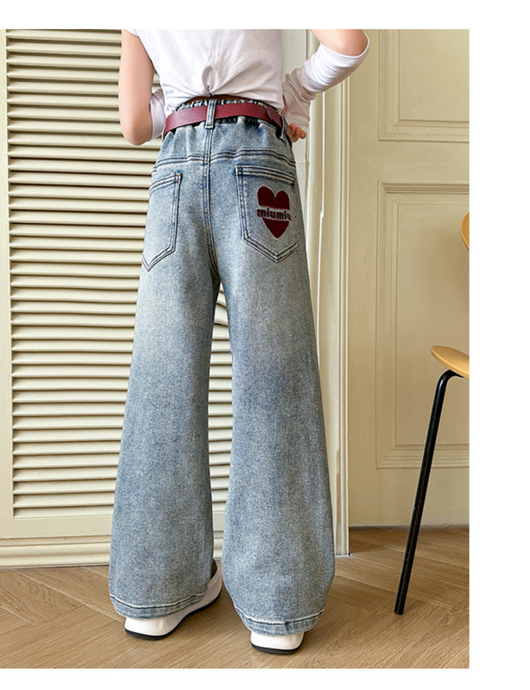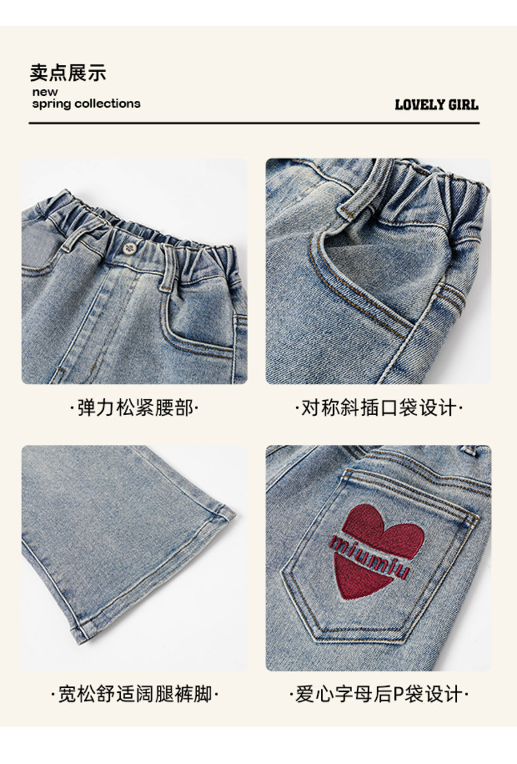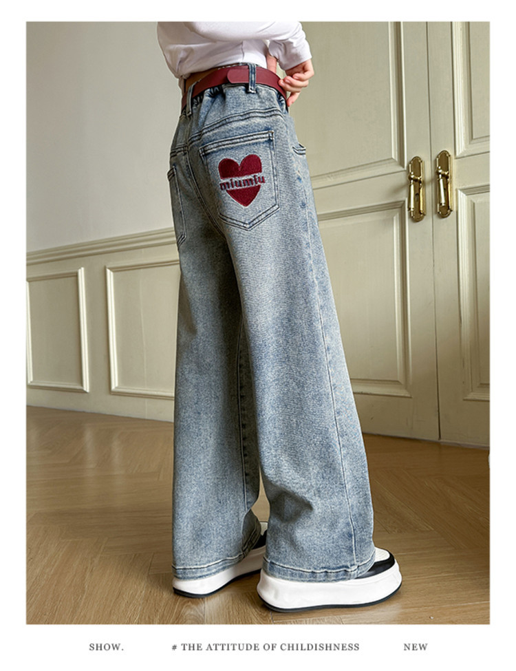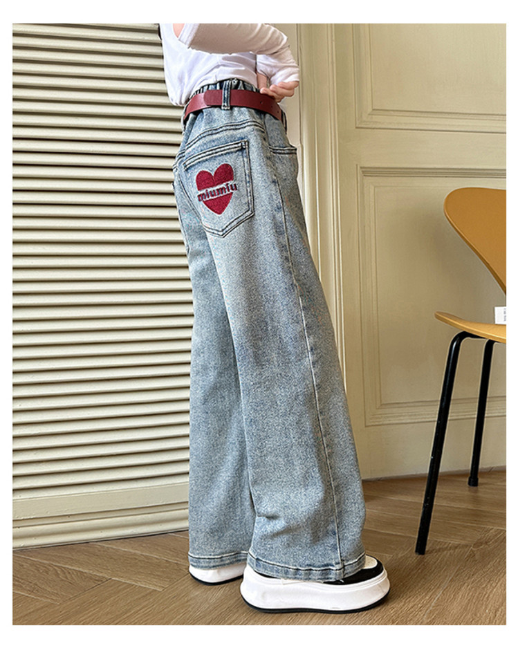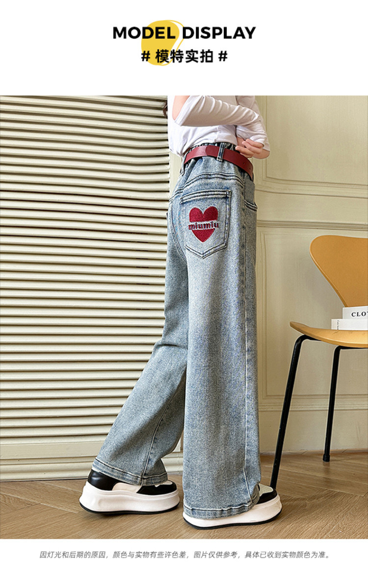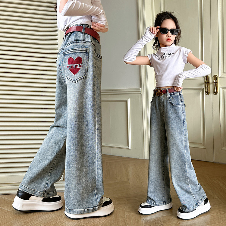대외 무역 소녀 큰 소년 봄 청바지 2025 새로운 스타일 소녀 사랑 바지 넓은 다리 바지 여자 바지 도매