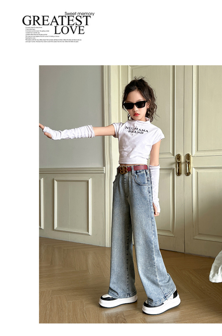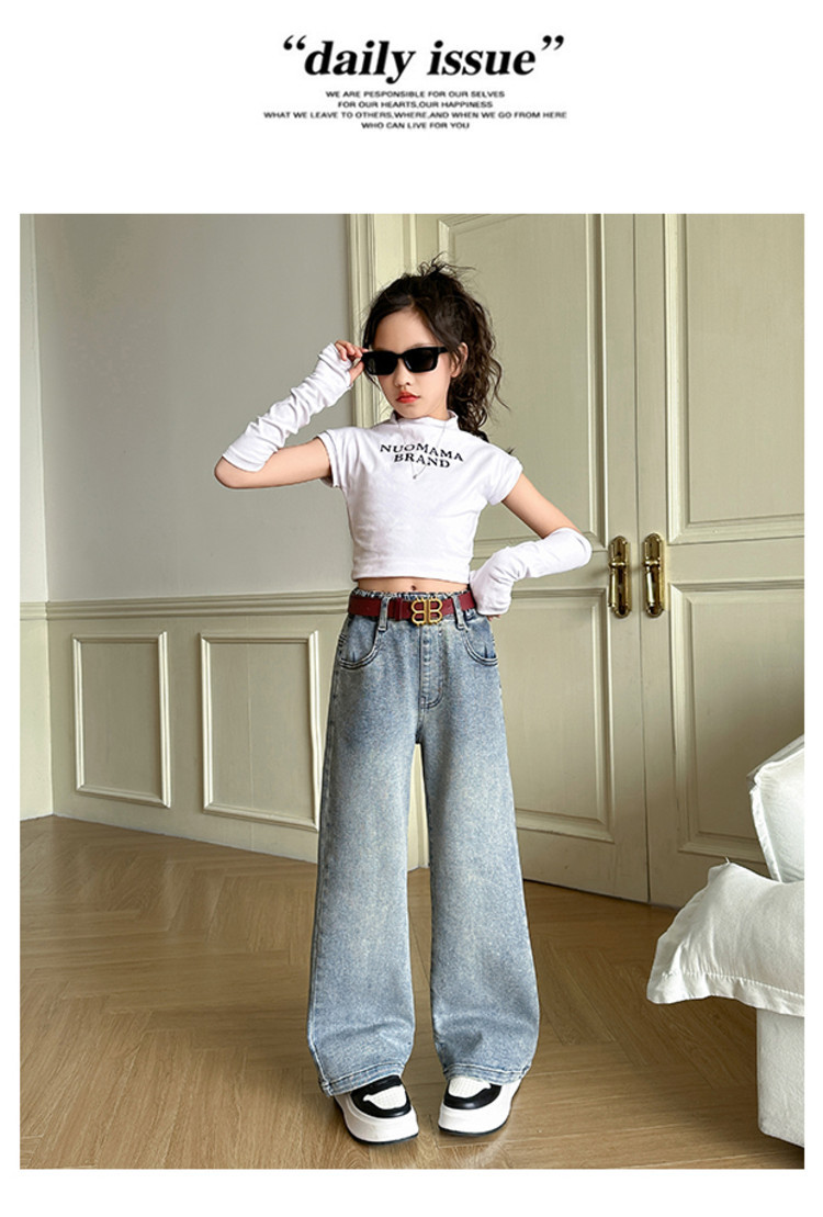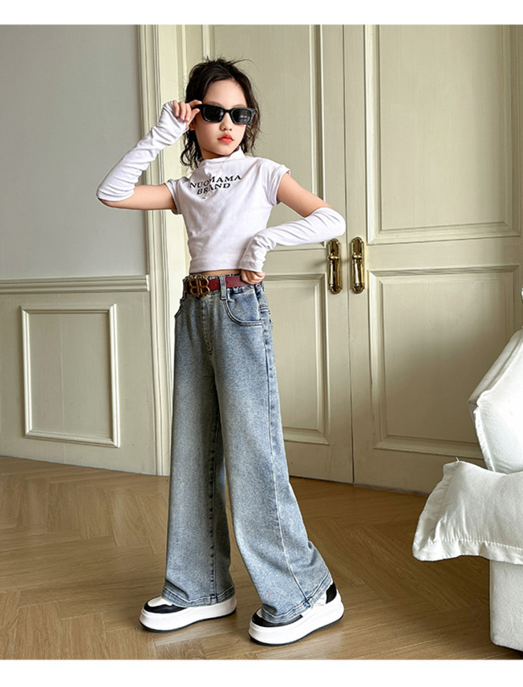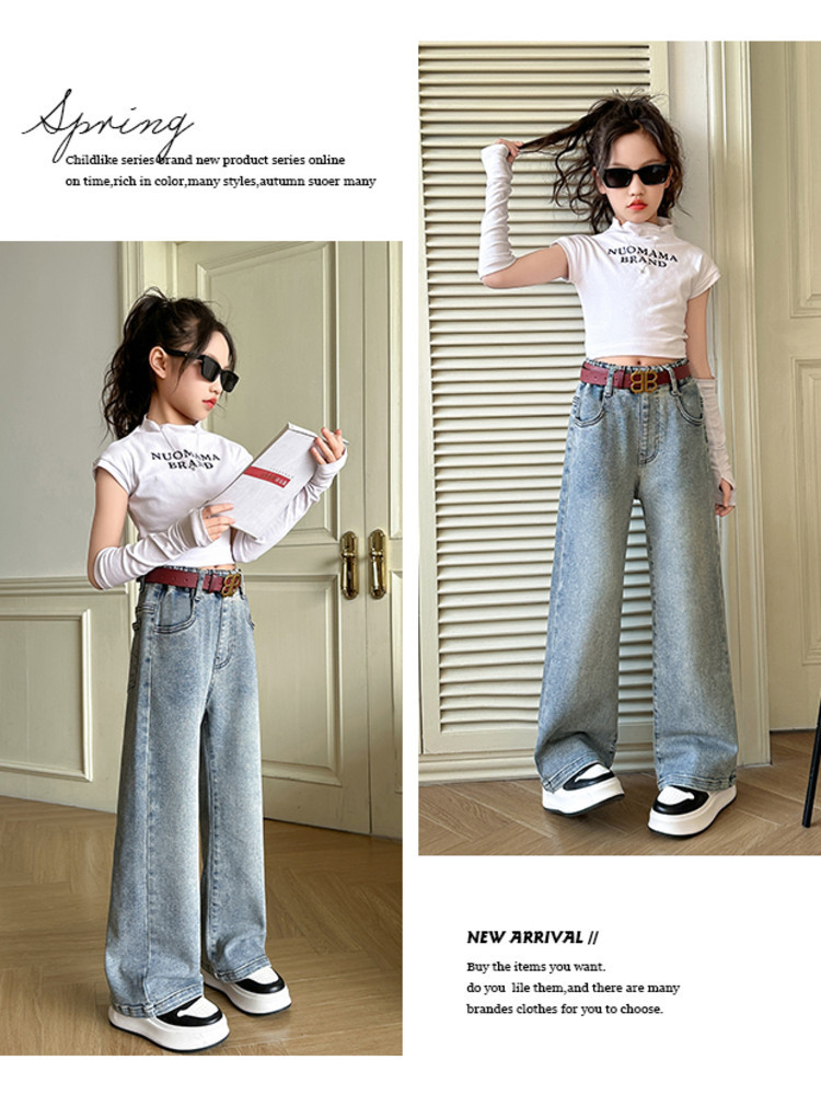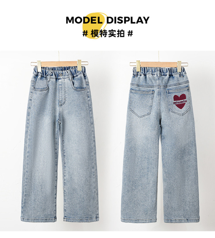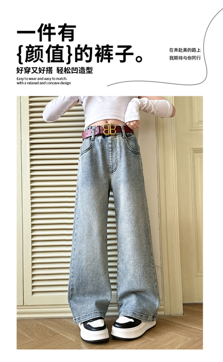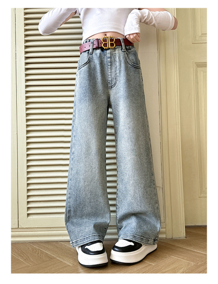 대외 무역 소녀 큰 소년 봄 청바지 2025 새로운 스타일 소녀 사랑 바지 넓은 다리 바지 여자 바지 도매스토어 가기