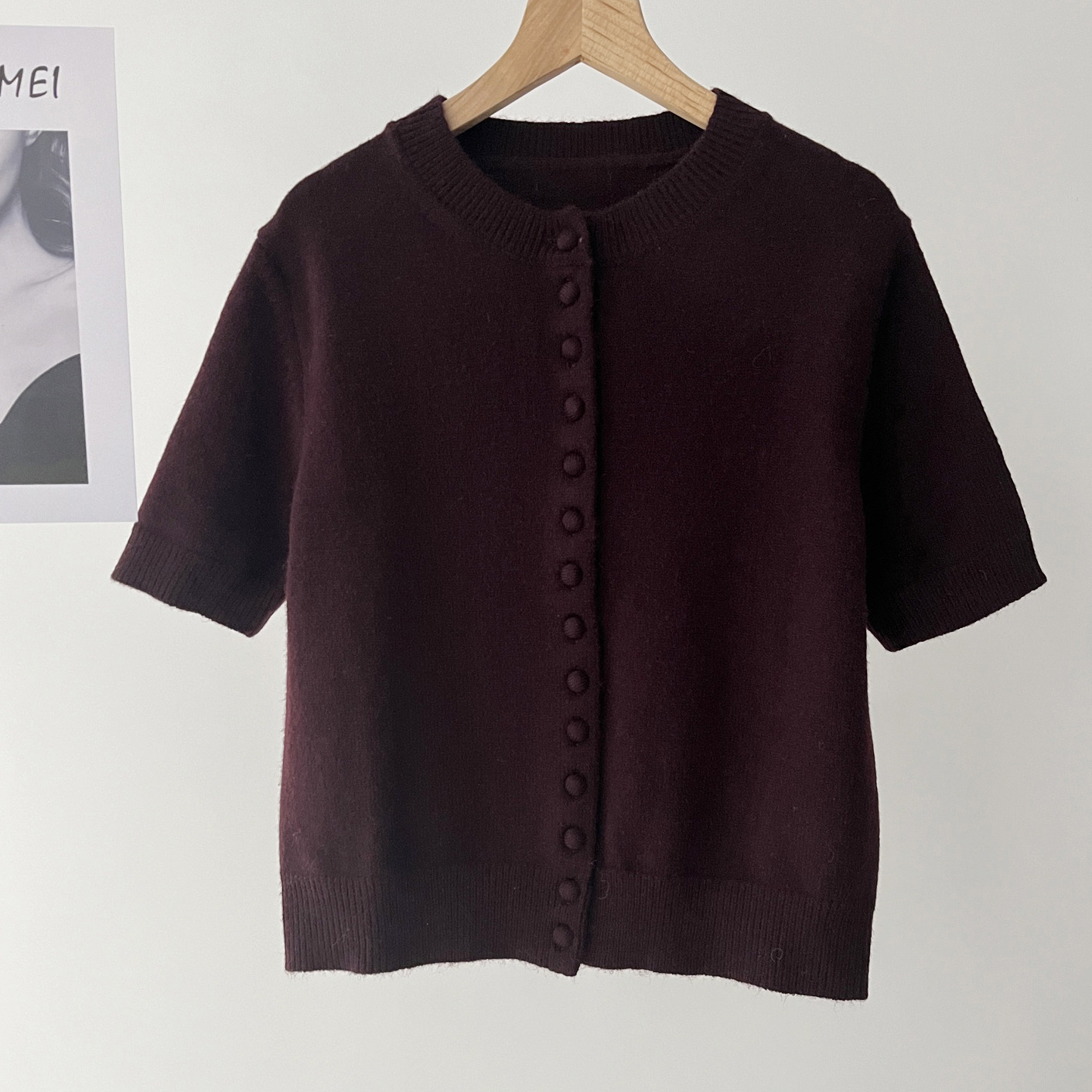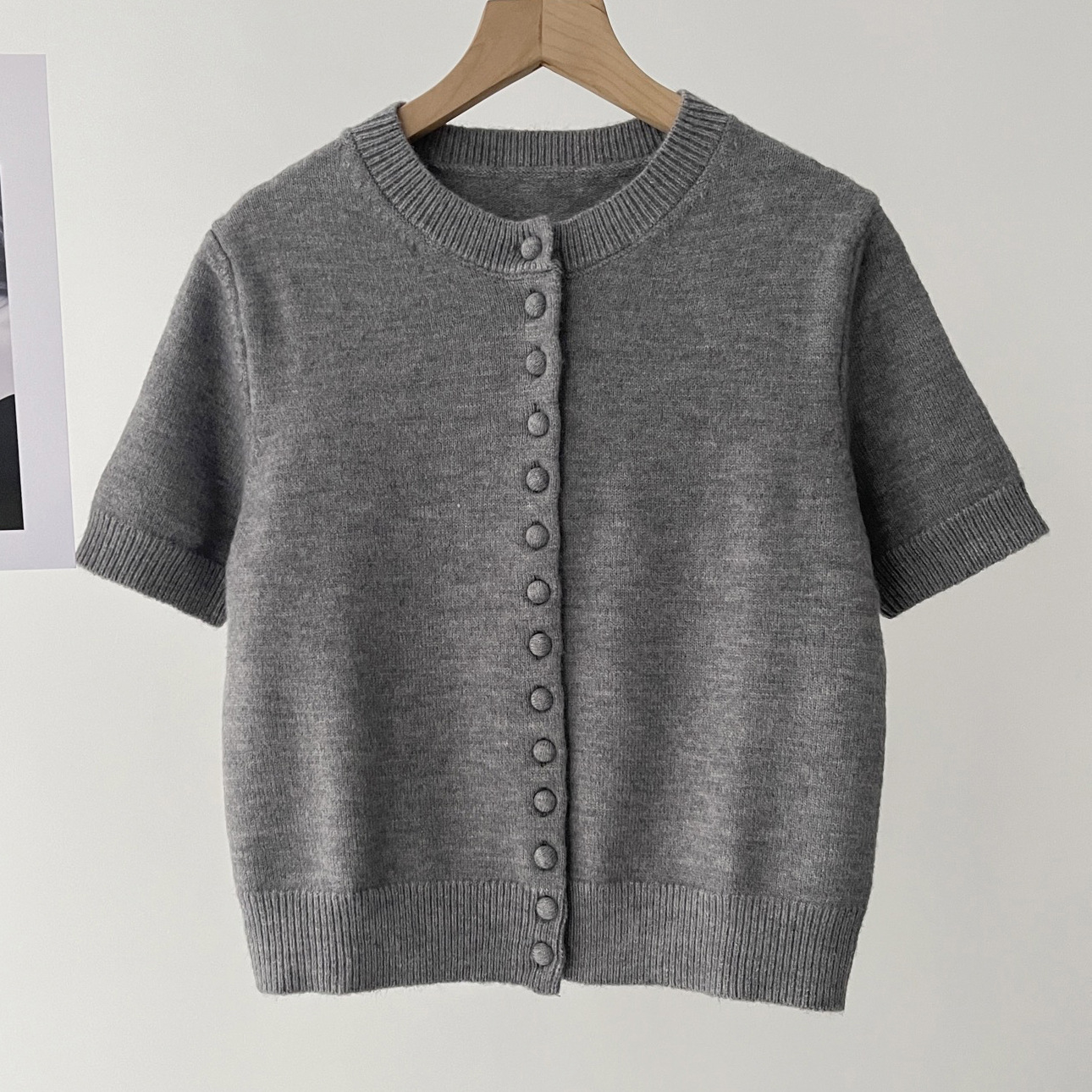 재고 M 스타일 여성 원피스 그레이 스타일 우아한 통근 스타일 라운드 넥 반팔 니트 카디건 탑