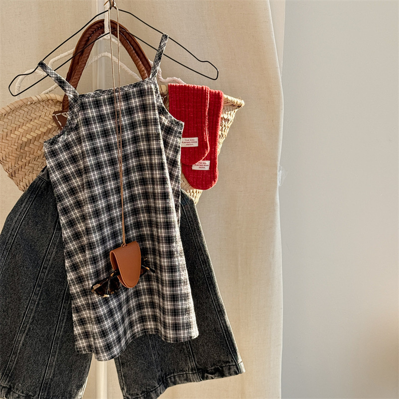 2025 Huzhou Zhili 아동복 봄과 여름 새 소녀 한국 민소매 슬링 원피스 여름 스커트 6093