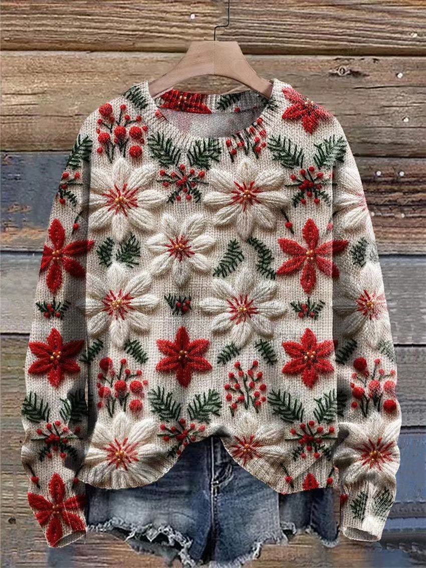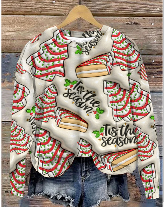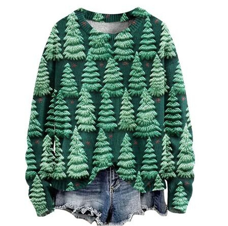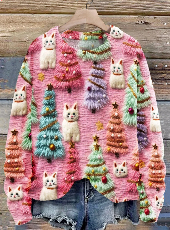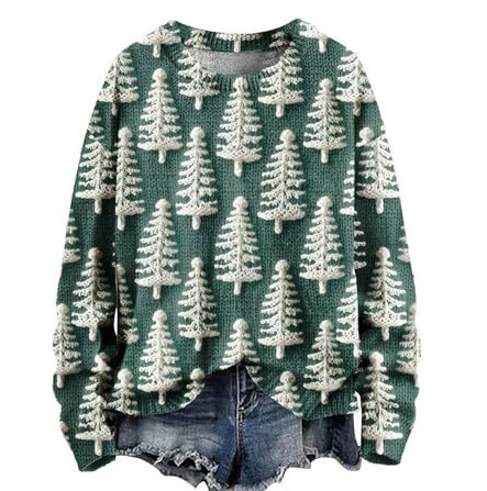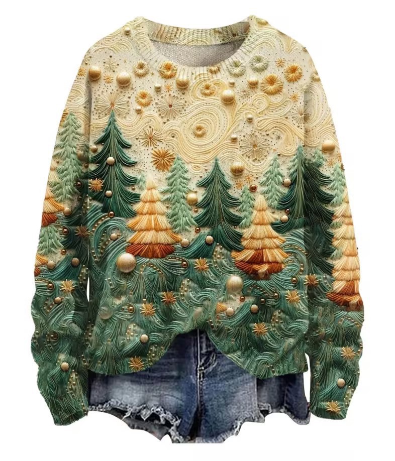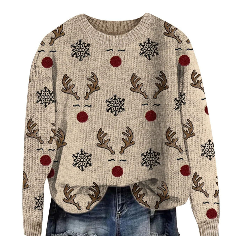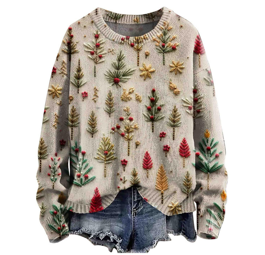 2025 국경 독립 역 여성 풀오버 크리스마스 스웨터 운동복 휴일 캐주얼 라운드 넥 롱 슬리브 탑