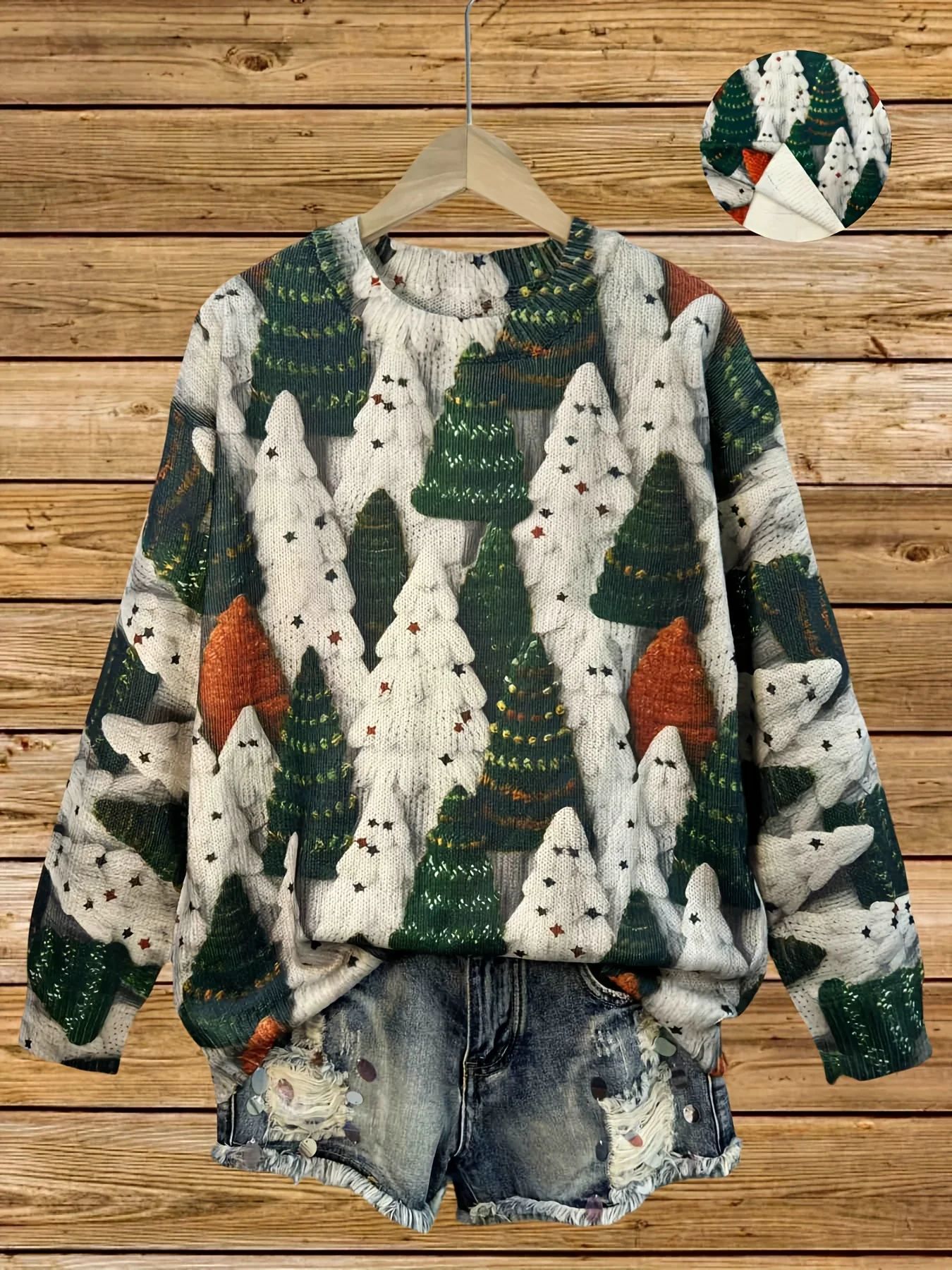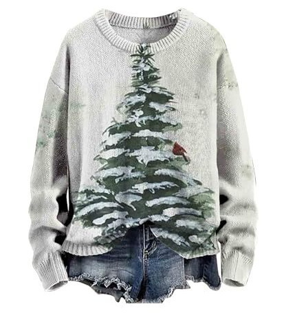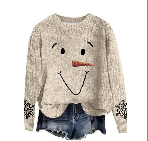 2025 국경 독립 역 여성 풀오버 크리스마스 스웨터 운동복 휴일 캐주얼 라운드 넥 롱 슬리브 탑스토어 가기