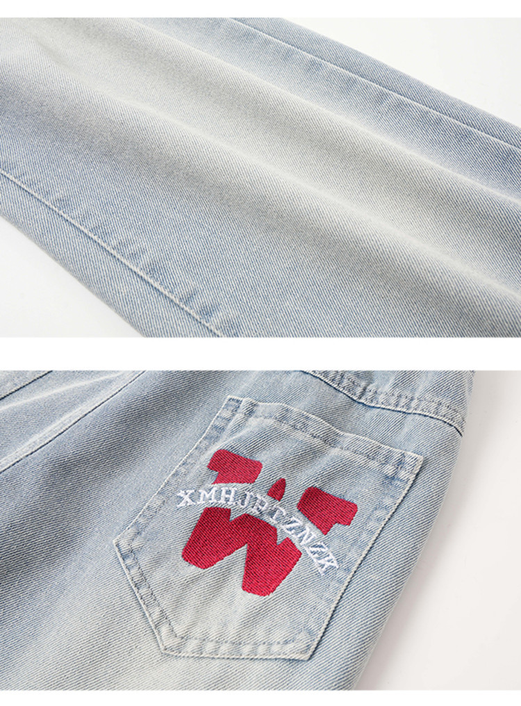 소녀 청바지 봄과 가을 2025 새로운 서양 스타일 유행 어린이 캐주얼 와이드 레그 바지 W 수 놓은 봄 트렌디 바지스토어 가기