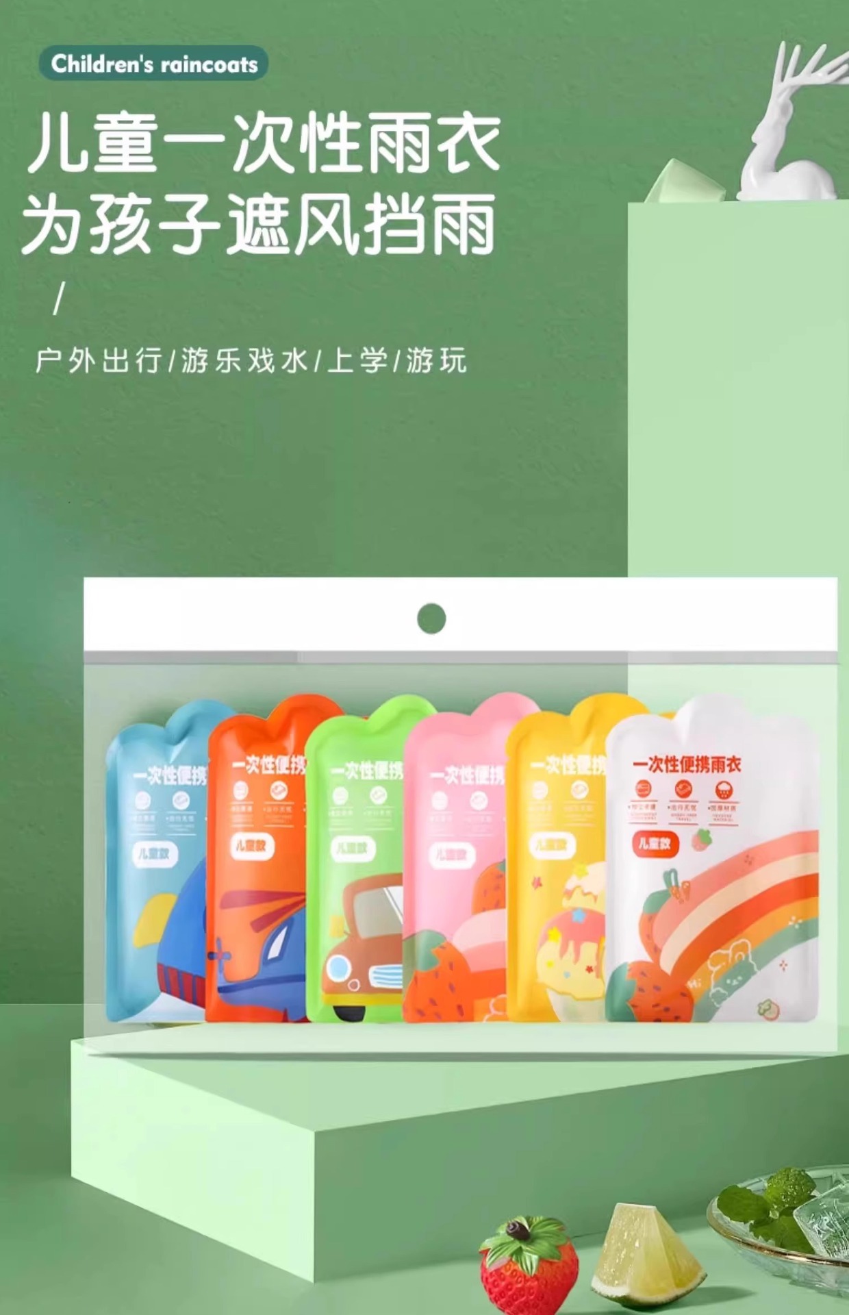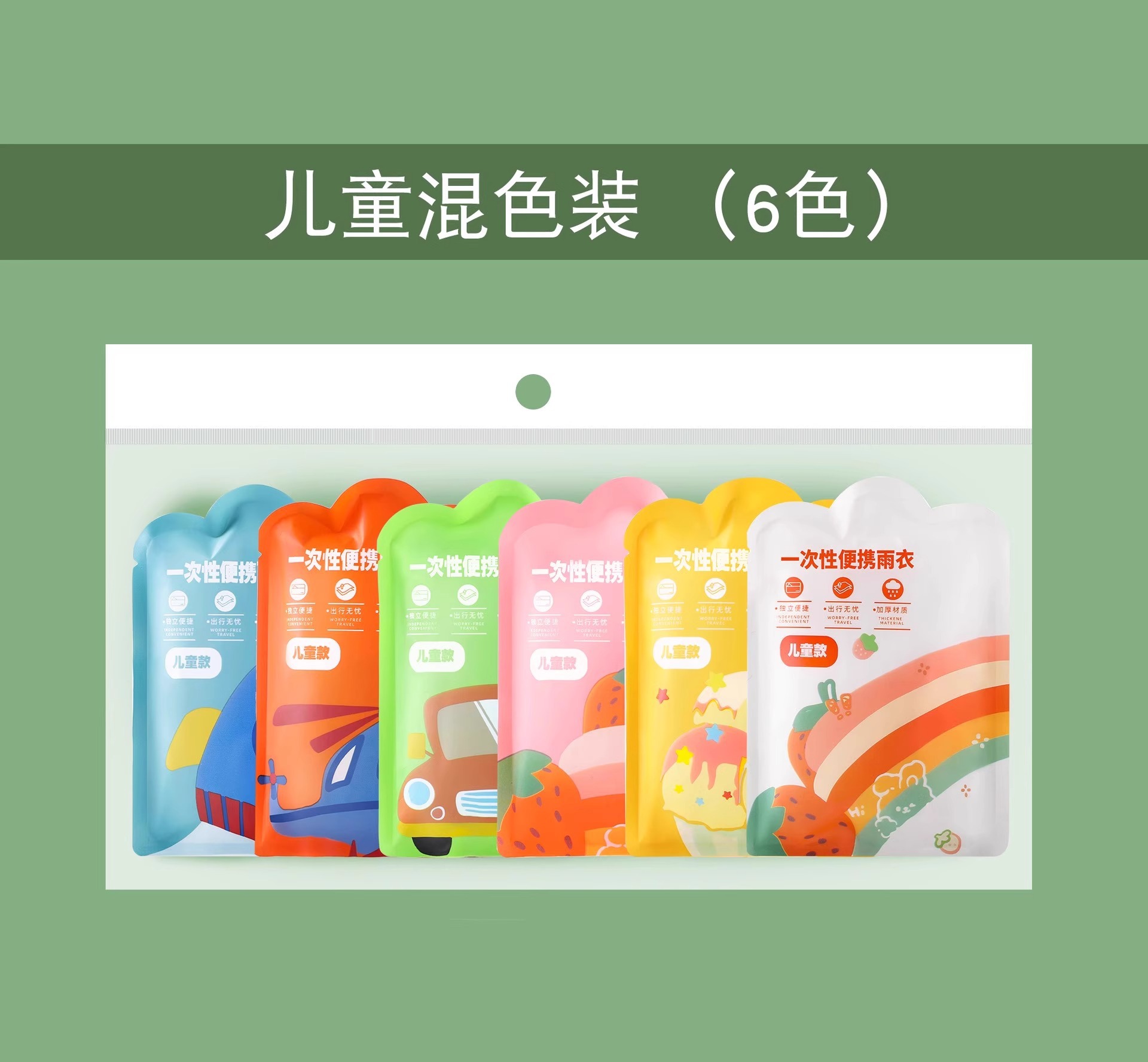 • [혼합색상 어린이비옷] 개별포장 6종세트 [두꺼운방수+개별포장+휴대용]