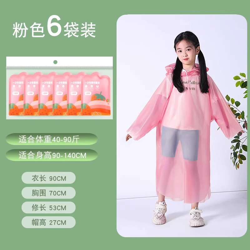 • [핑크 어린이비옷] 개별포장 6종세트 [두꺼운 방수 + 독립포장 + 휴대성]