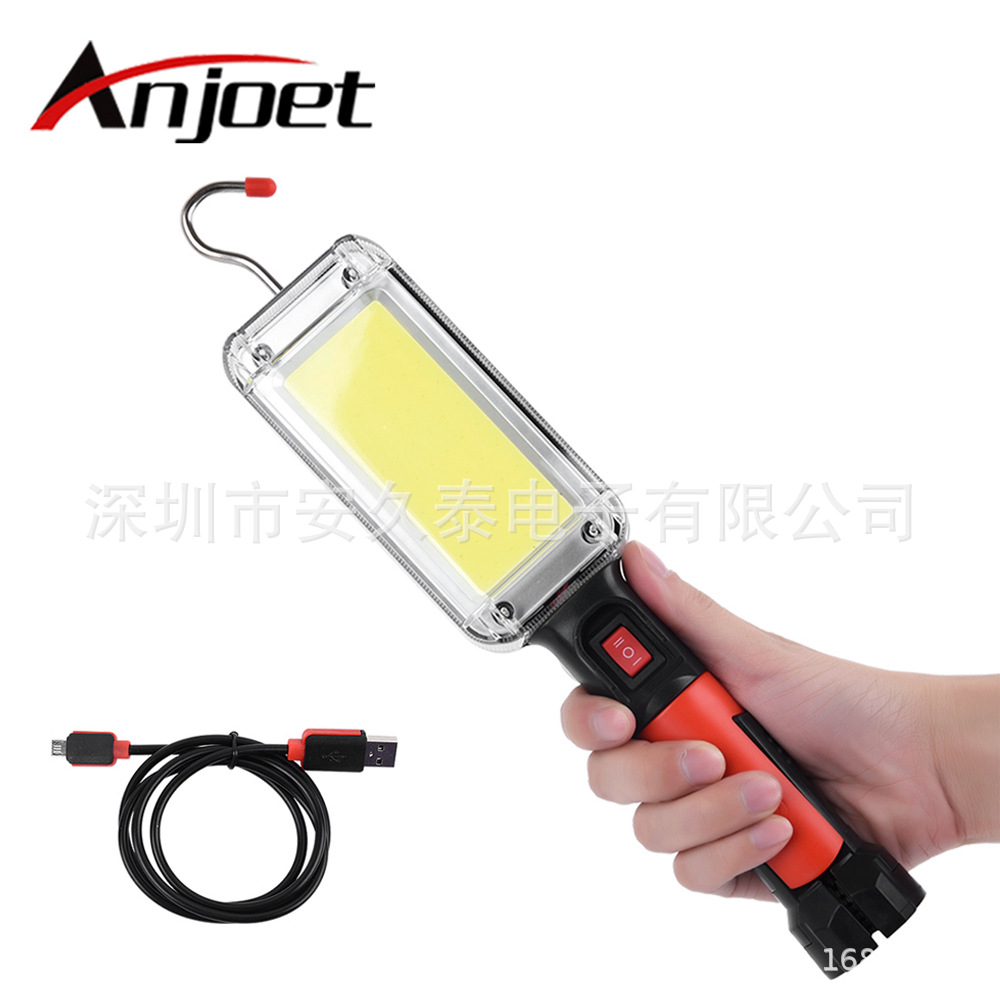 LED 작업 빛 휴대용 손전등 자석 후크 캠핑 라이트 USB COB 충전식 18650 손전등