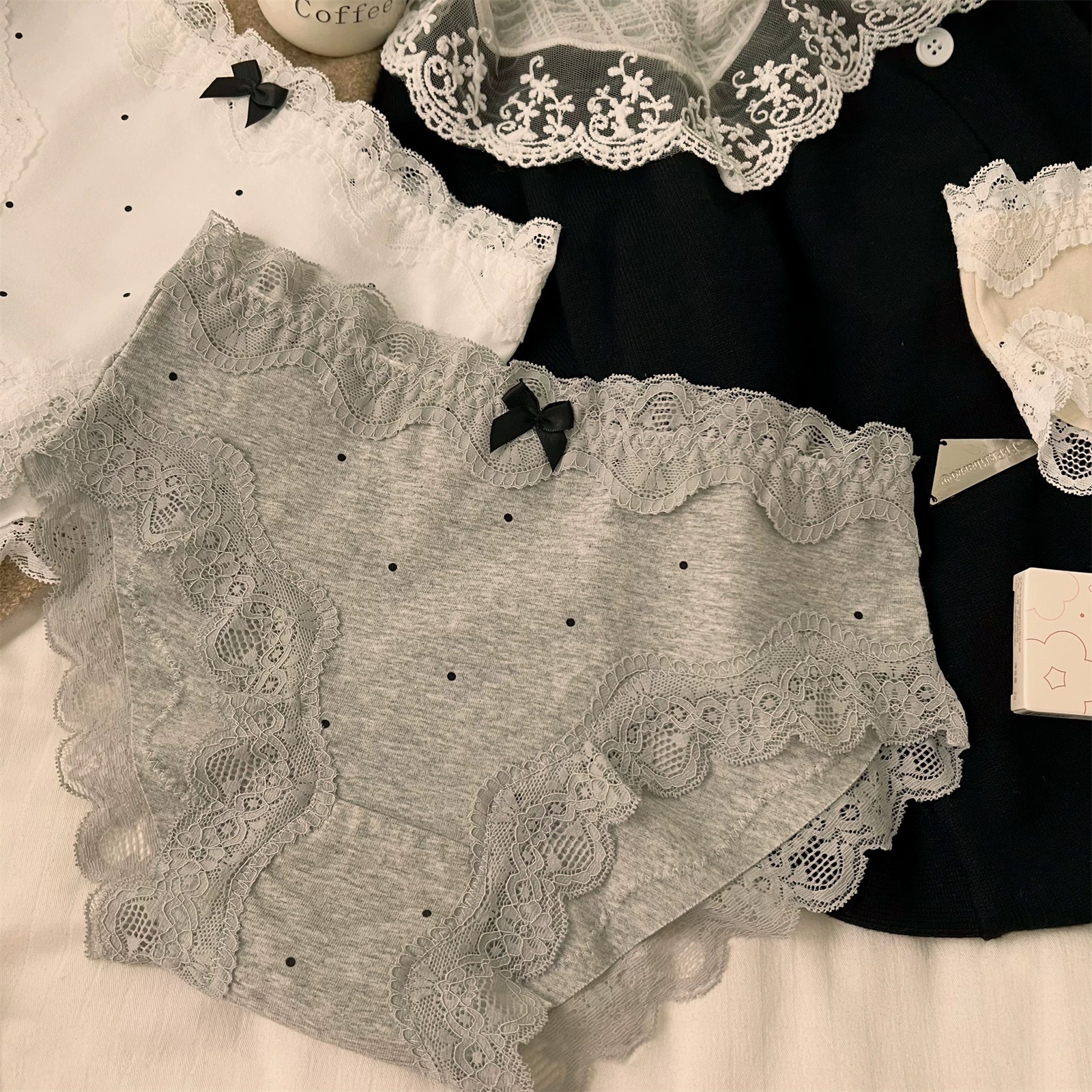 속옷 소녀 면화 정균 가을과 겨울 2025 새로운 레이스 트림 반바지 여성의 추적없는 섹시한 미드 웨이스트 브리프스토어 가기