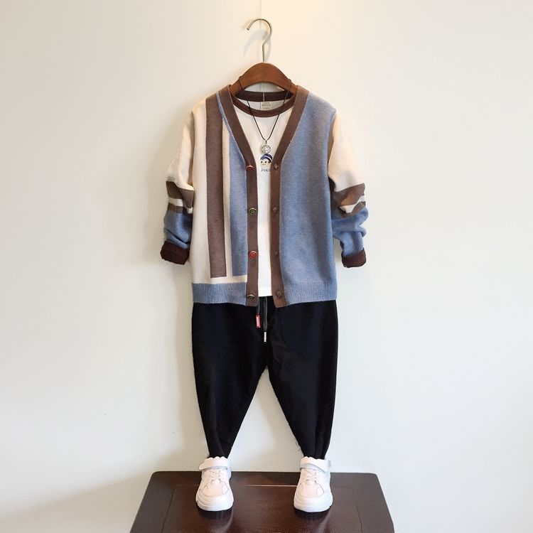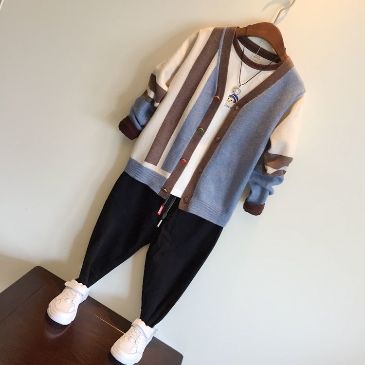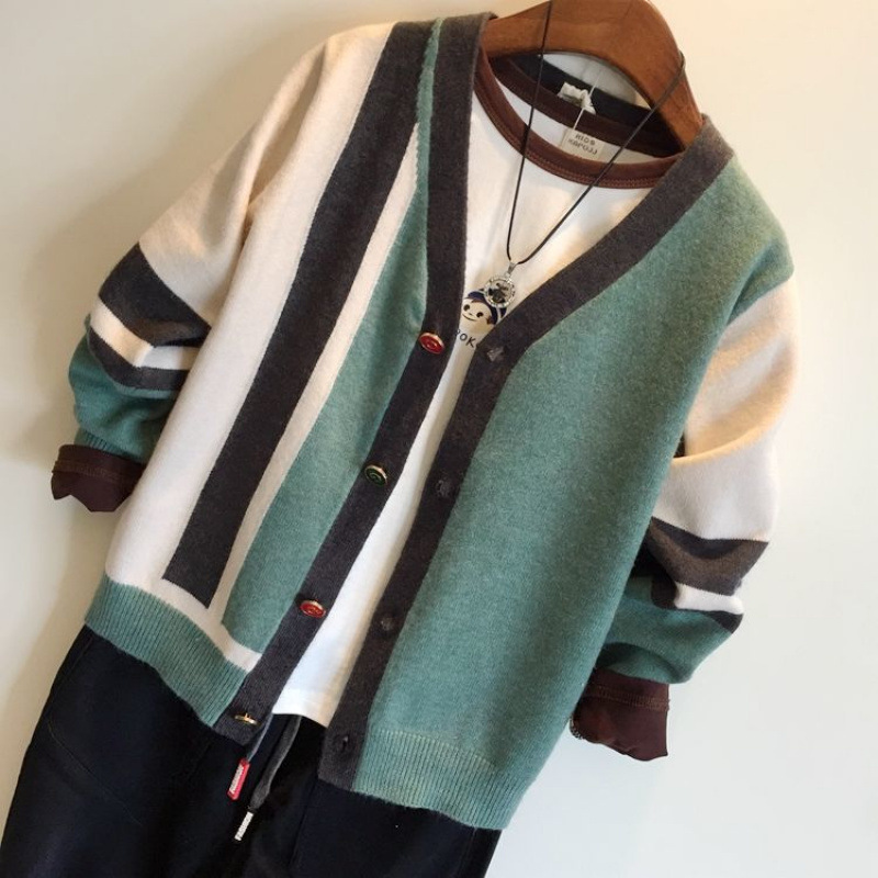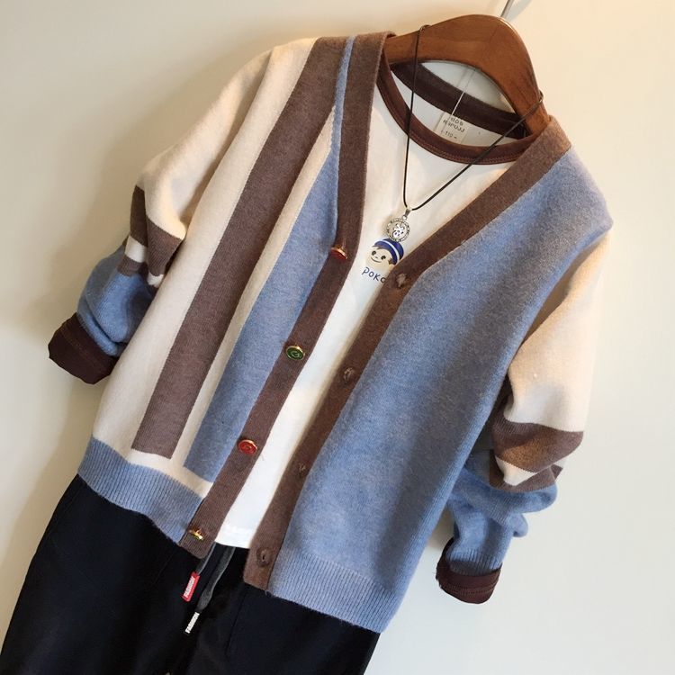 소년 니트 카디건 재킷 어린이 컬러 스트립 스웨터 25 년 봄과 가을 새 한국식 소년 스웨터 중형 및 대형 아동복스토어 가기