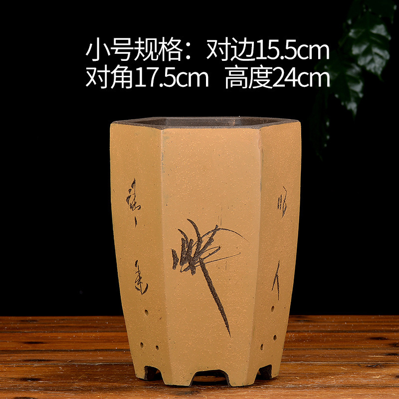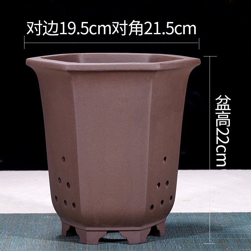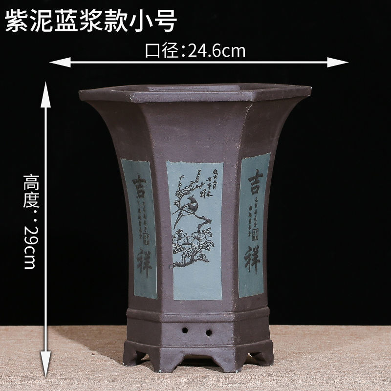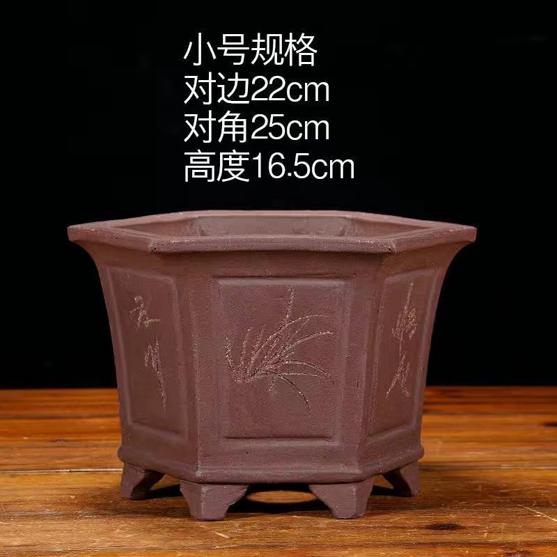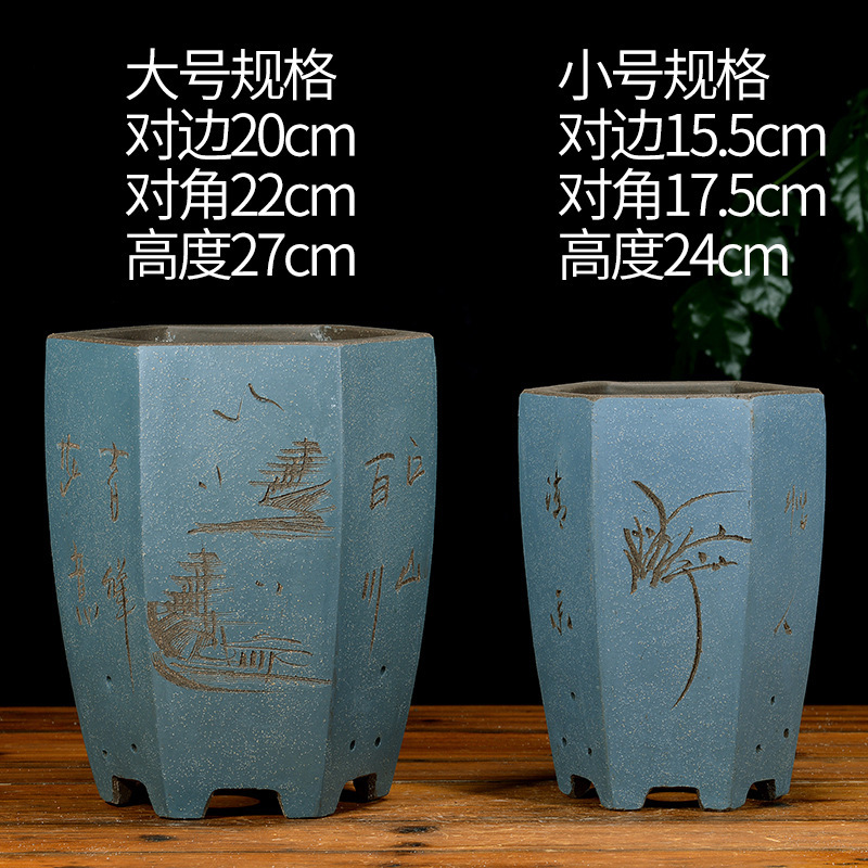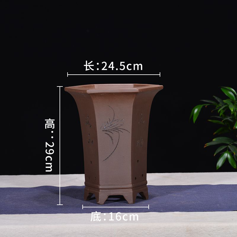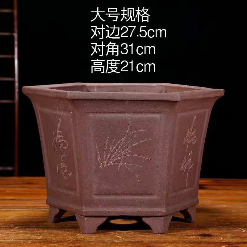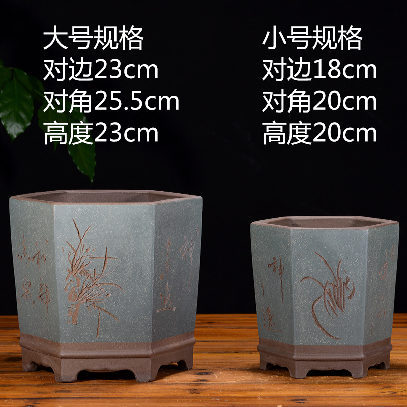 Yixing 보라색 모래 냄비 육각형 난초 꽃 냄비 꽃 녹색 식물 화분 큰 수제 꽃 냄비 화분 화분스토어 가기