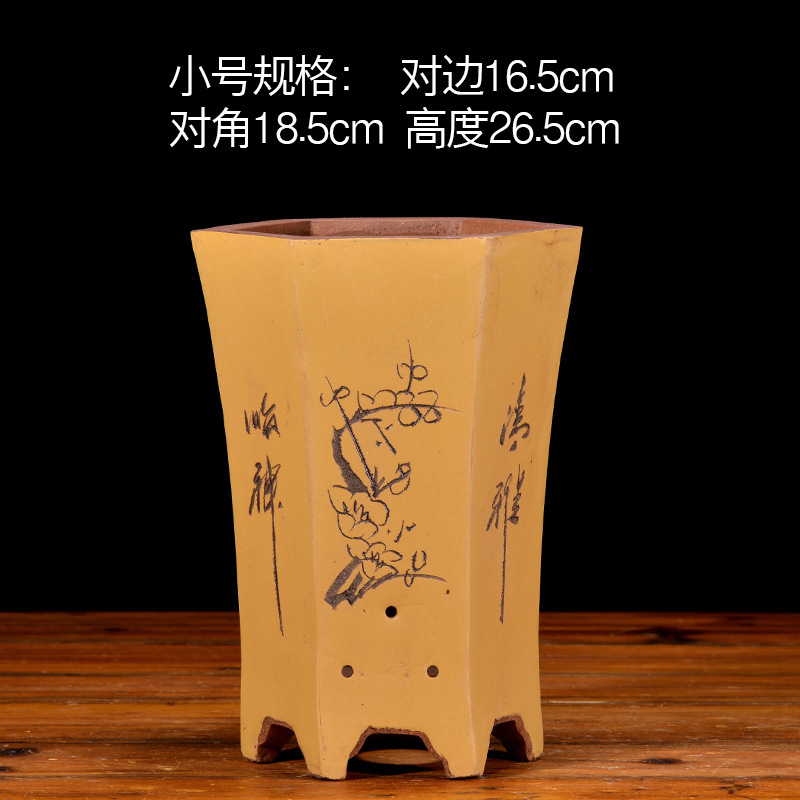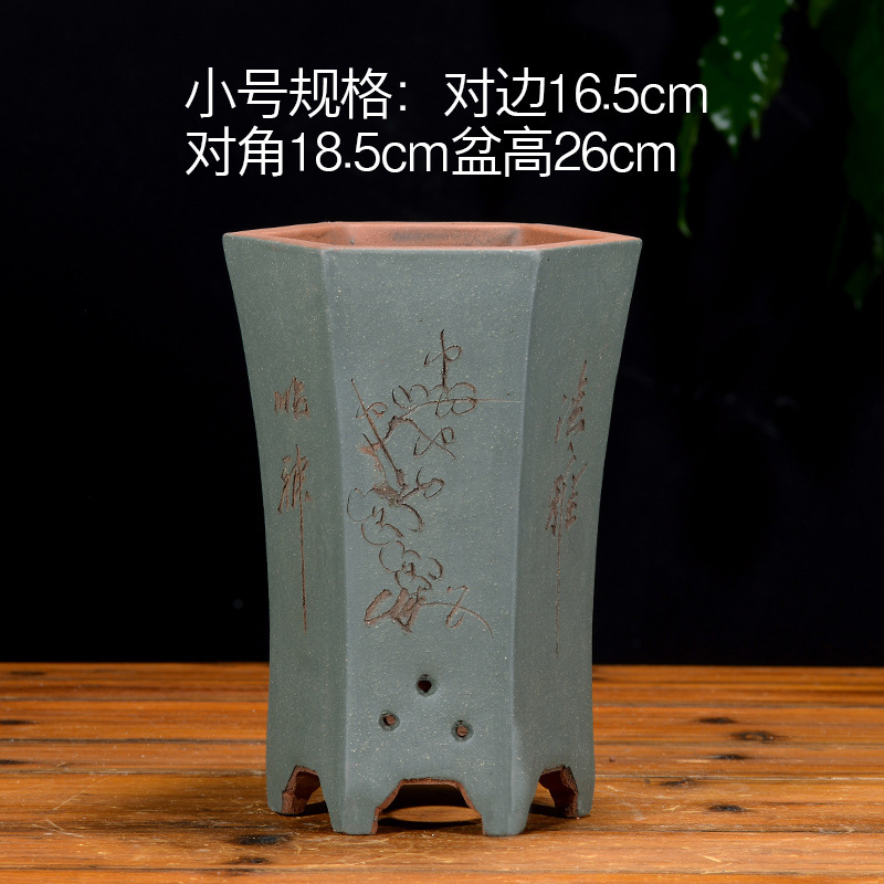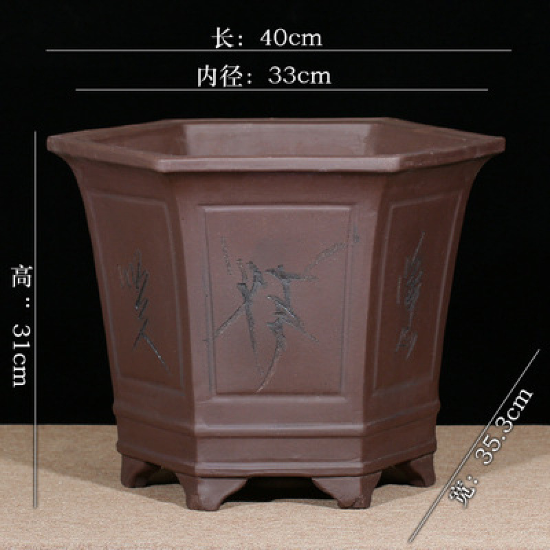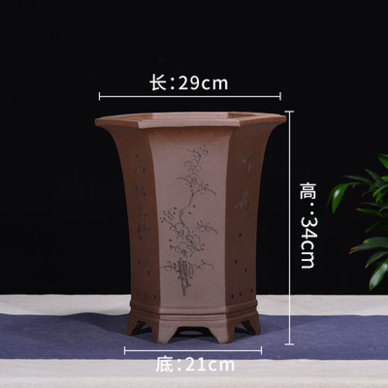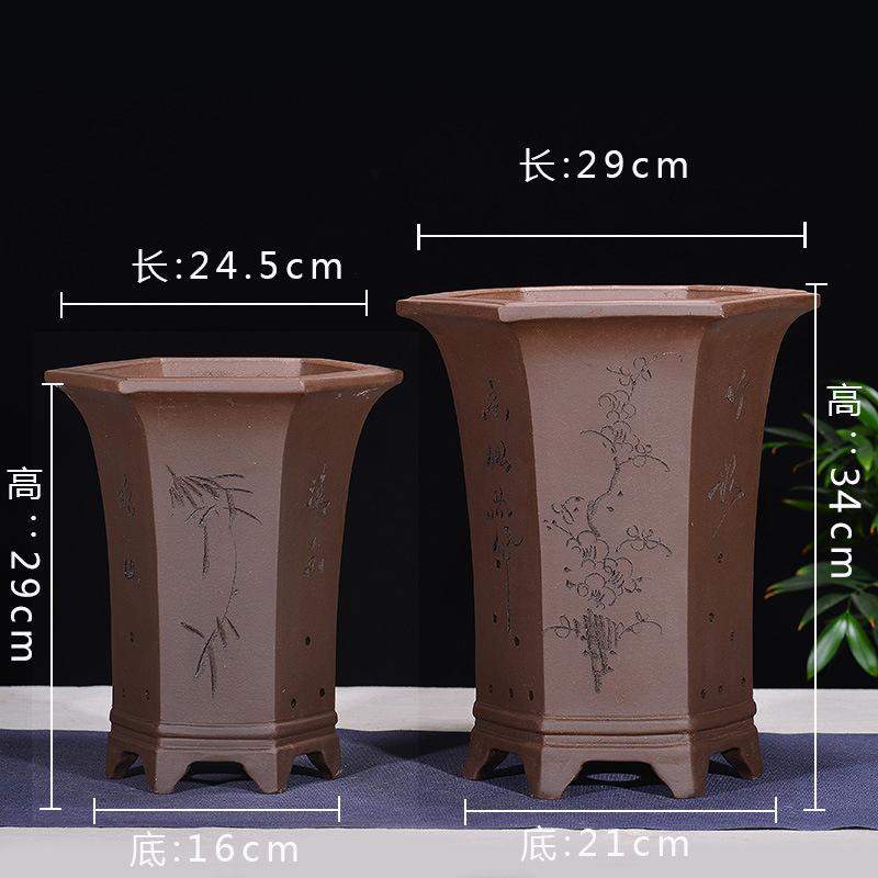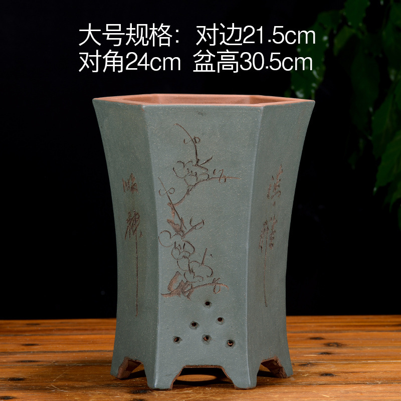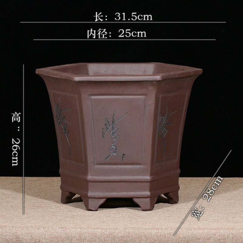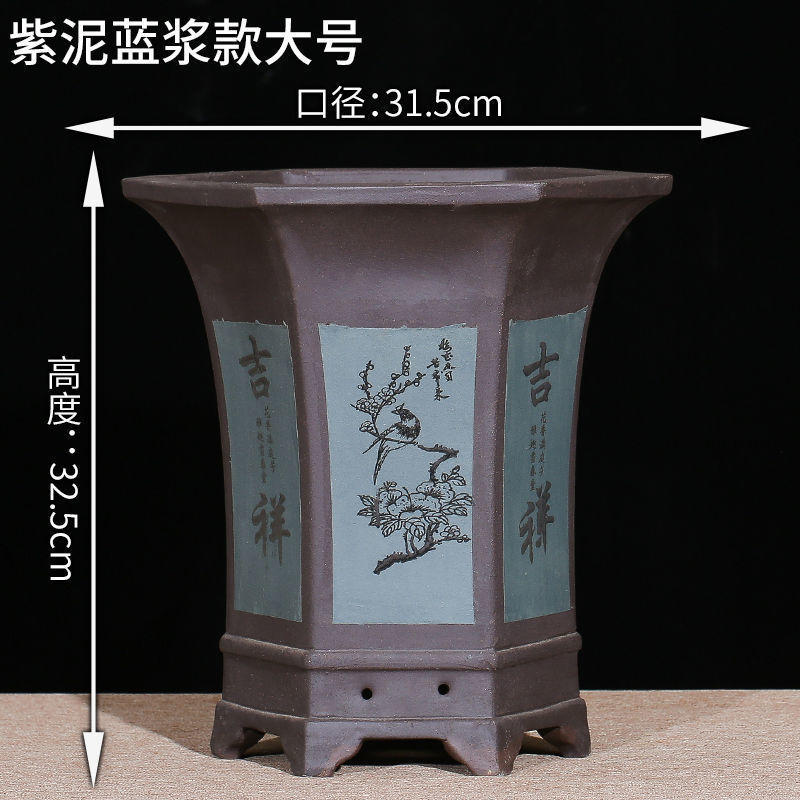 Yixing 보라색 모래 냄비 육각형 난초 꽃 냄비 꽃 녹색 식물 화분 큰 수제 꽃 냄비 화분 화분스토어 가기