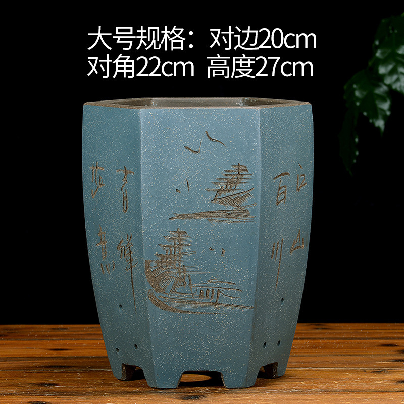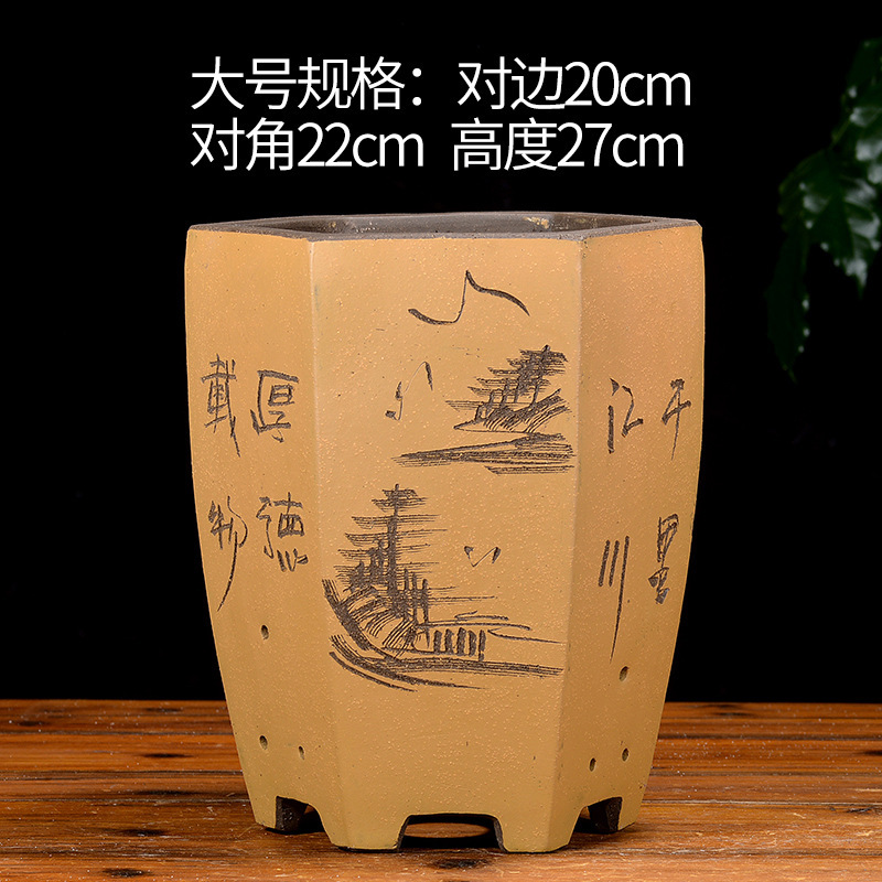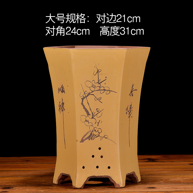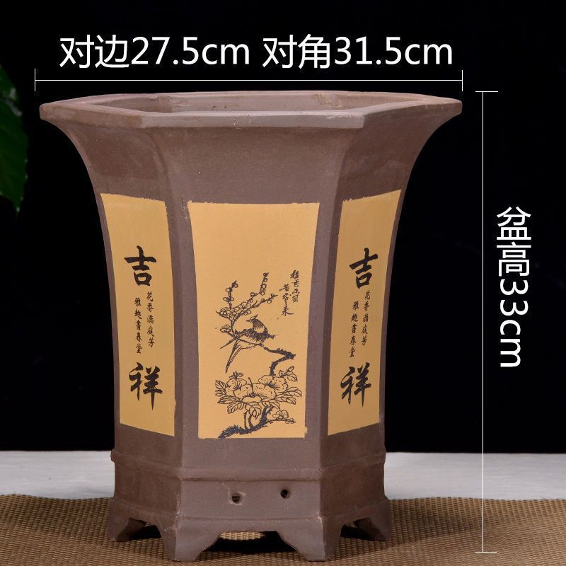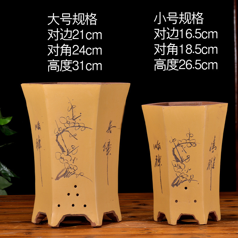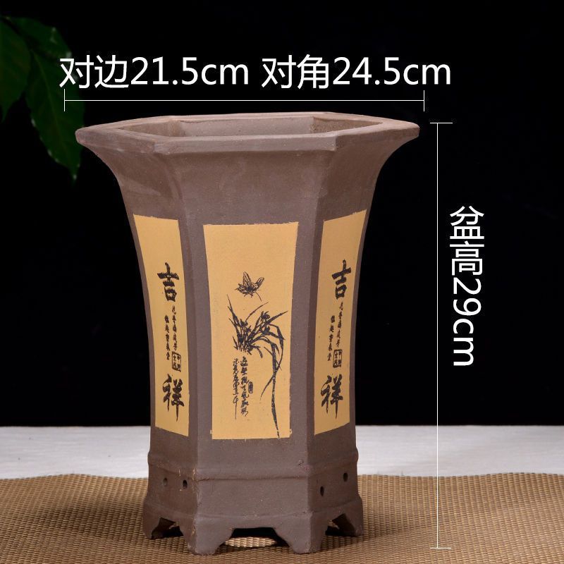 Yixing 보라색 모래 냄비 육각형 난초 꽃 냄비 꽃 녹색 식물 화분 큰 수제 꽃 냄비 화분 화분