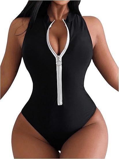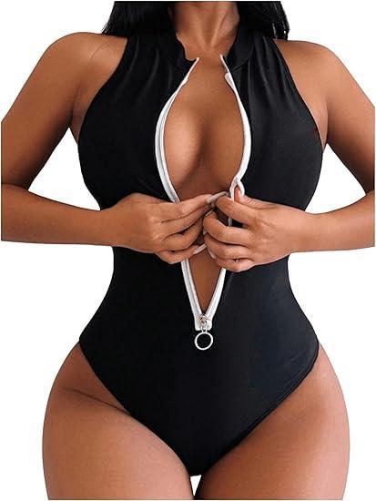 2025 유럽과 미국 국경 대외 무역 새로운 단색 지퍼 타이트 백리스 섹시한 원피스 수영복 여성 서핑 의류스토어 가기