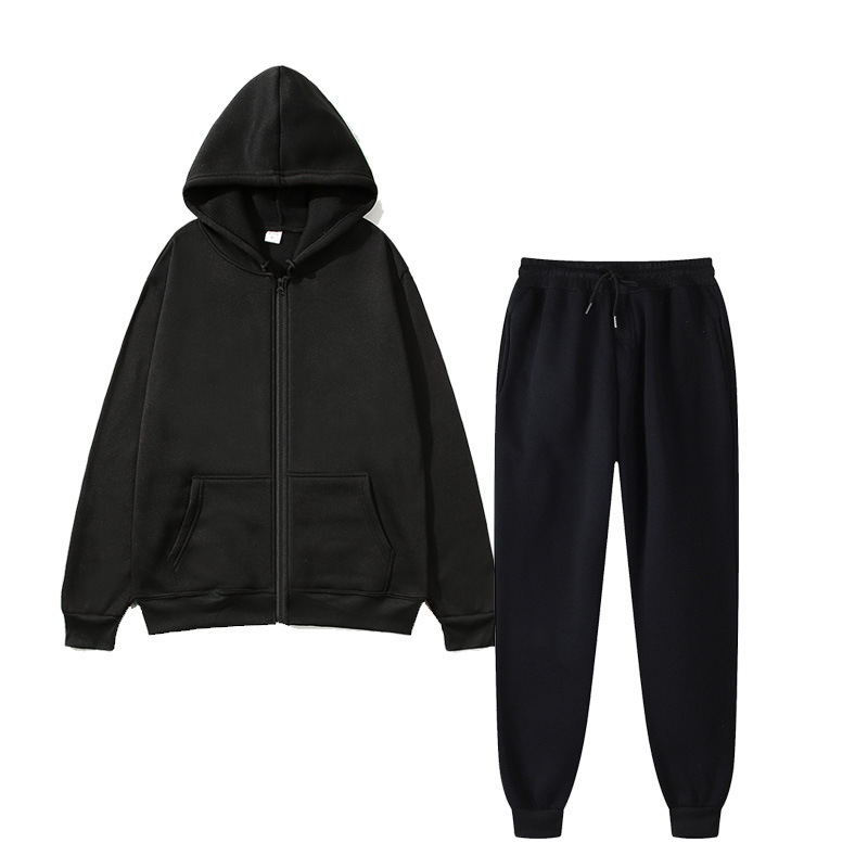 크로스 보더 플리스 지퍼 셔츠 세트 남성용 카디건 후드 느슨한 스웨터 바지 단색 풀 스포츠웨어 도매스토어 가기