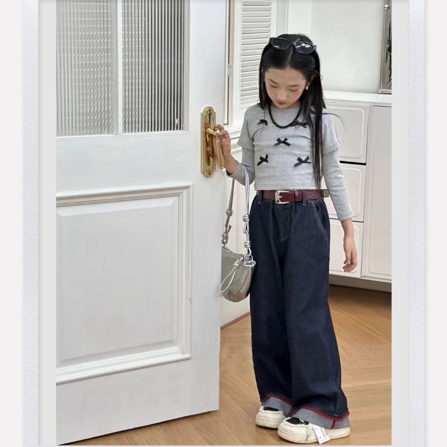 소녀 바지 봄 새로운 한국 스타일 어린이 서양식 올매치 걸스 와이드 레그 트렌디 한 스트레이트 청바지 Huzhou Zhili스토어 가기