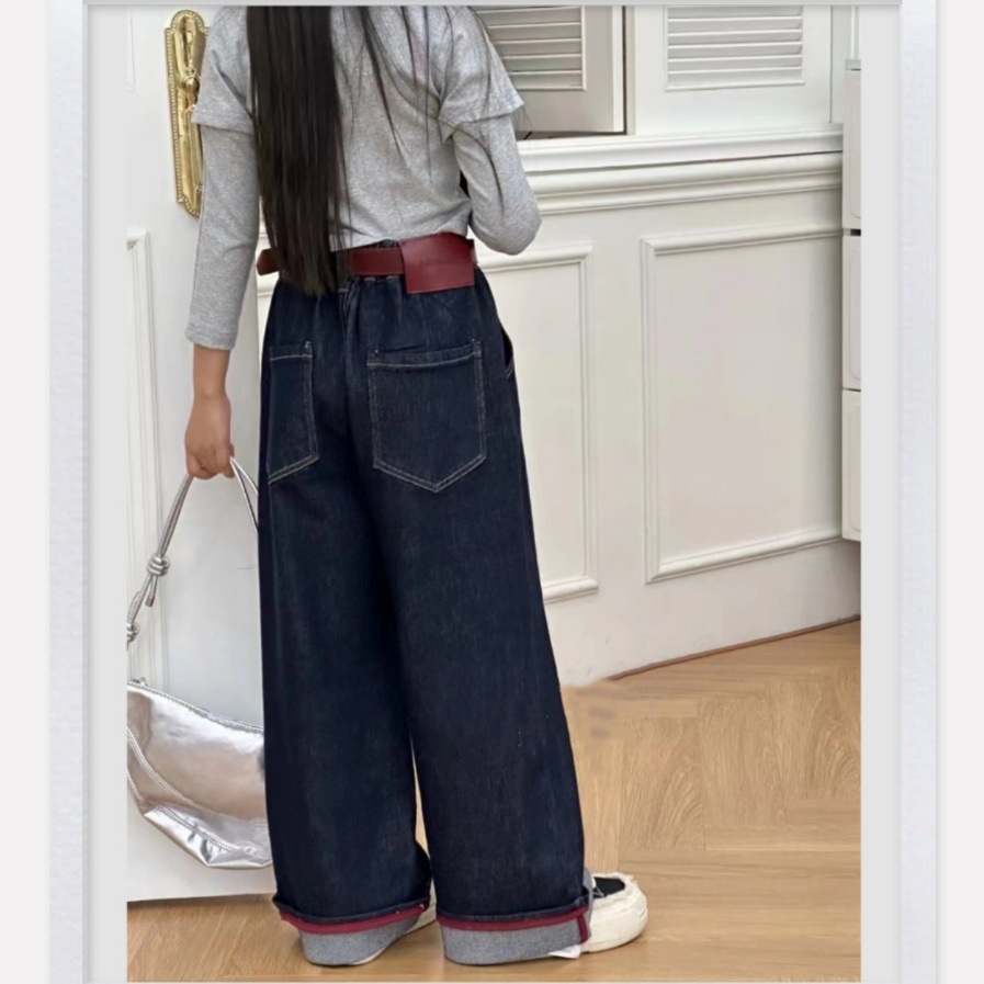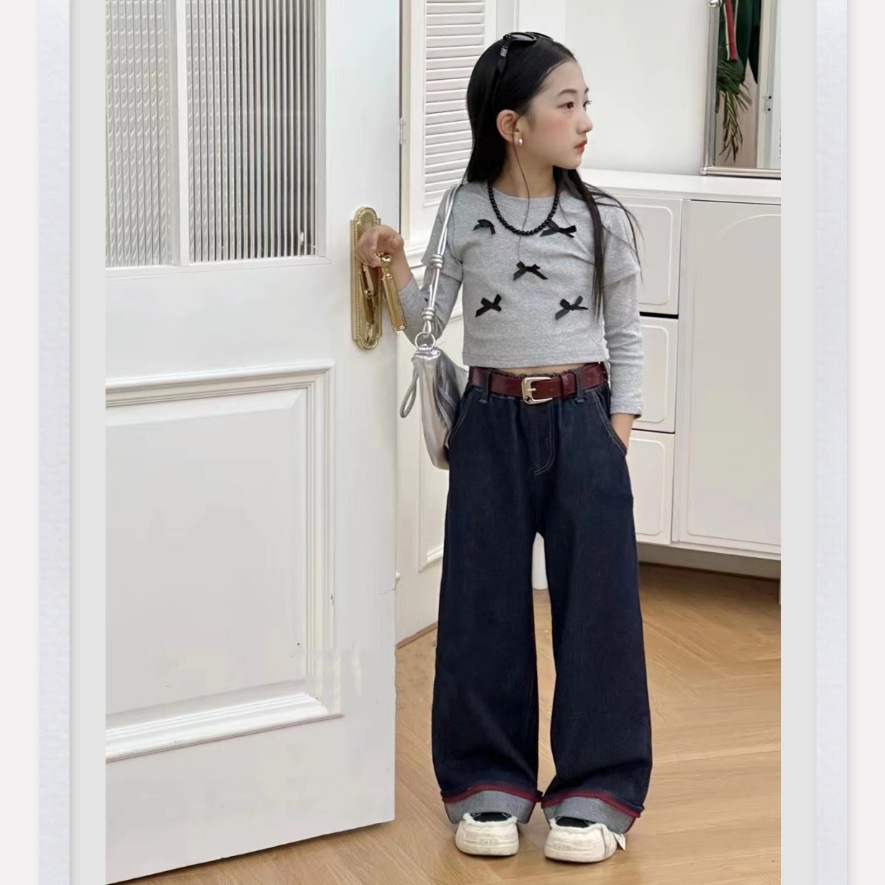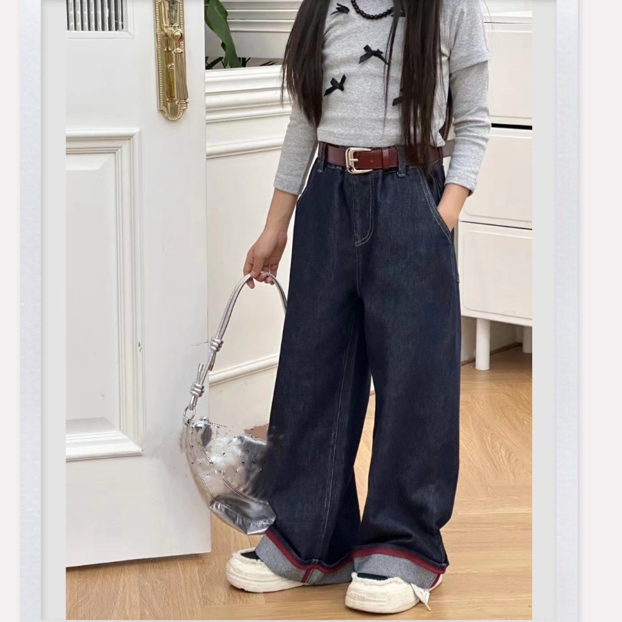 소녀 바지 봄 새로운 한국 스타일 어린이 서양식 올매치 걸스 와이드 레그 트렌디 한 스트레이트 청바지 Huzhou Zhili