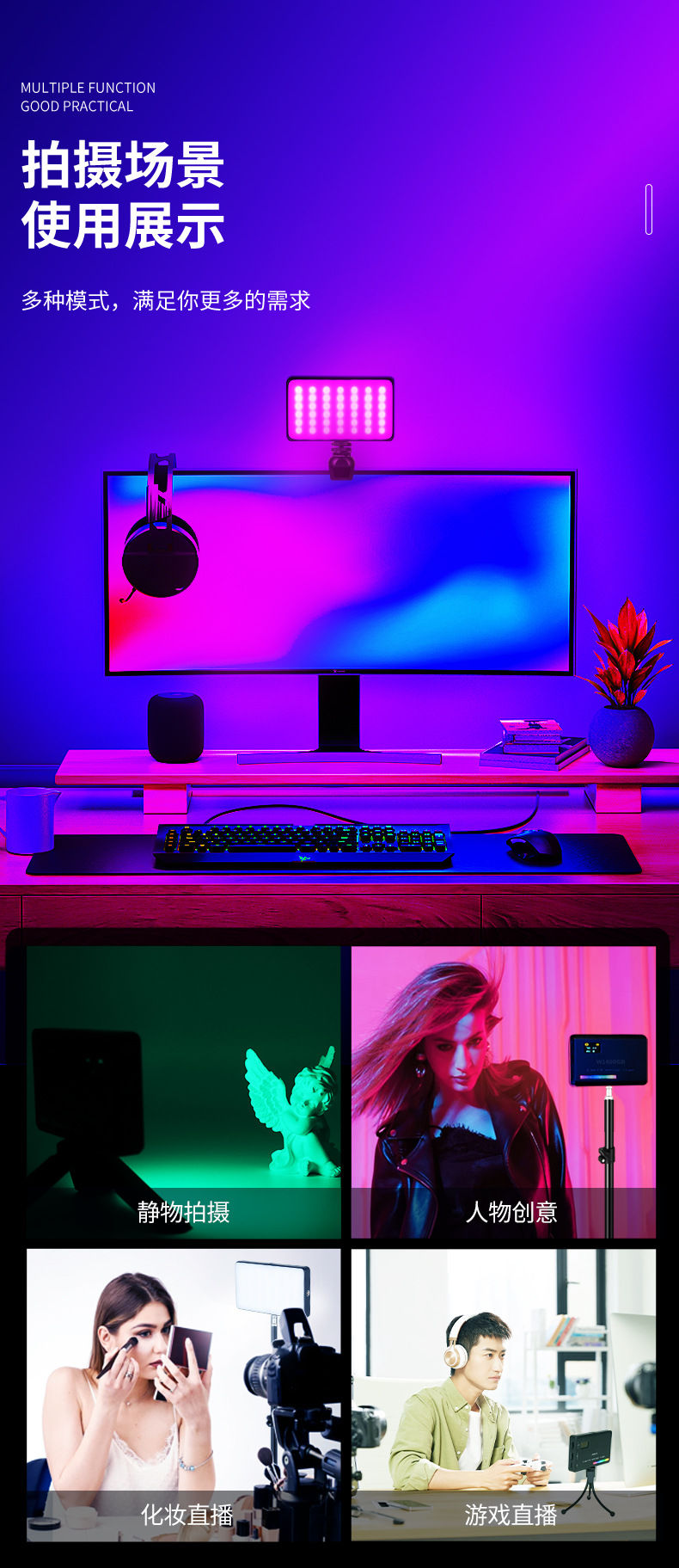 公司致力于摄影器材及周边产品的研发与生产,主营产品包括各类LED补光灯,如:相机及手机补光灯、会议灯、直播灯、氛围灯等;机顶闪光灯、相机引闪器、相机快门线:应用于直播的麦克风等。公司产品通过了1S09001国际质量认证管理体系。我们拥有自己的品牌VL0GLITE,我们的产品已经取得了CE/FCC/RoHS认证,主销欧美及东南亚市场。
