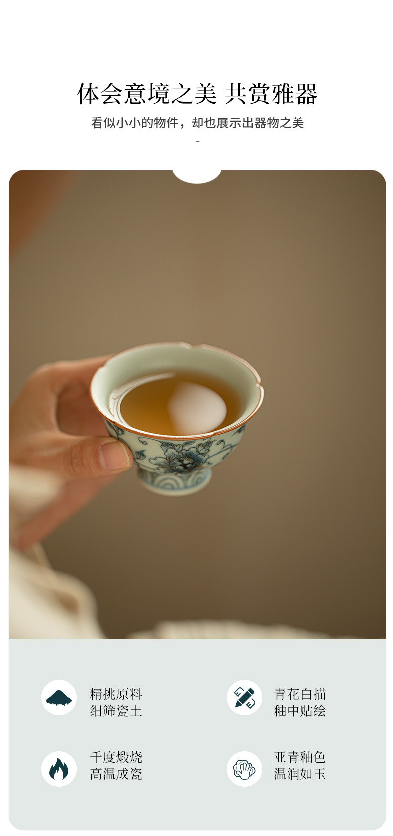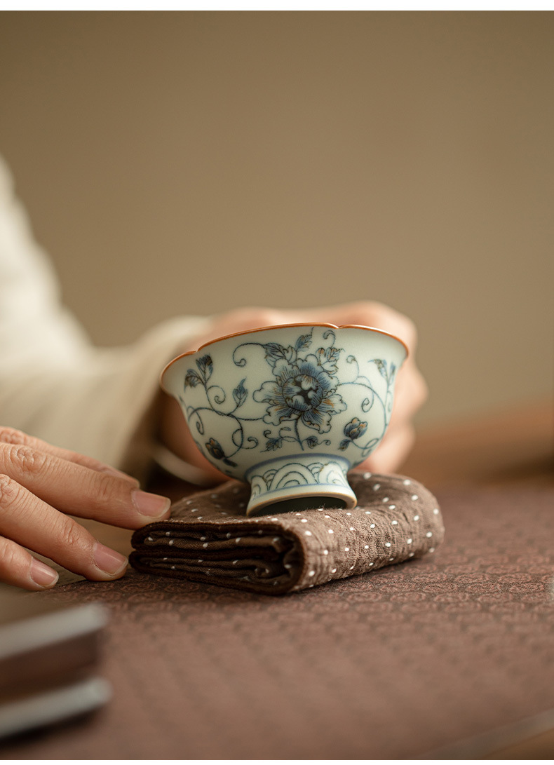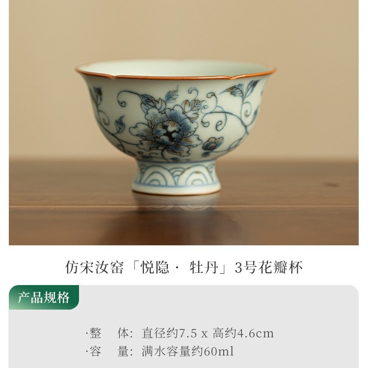 Jingdezhen Qinghua Ruyao 모란 티 컵 세라믹 티 세트 마스터 컵 게스트 컵 차 시음 컵 고블릿 쿵푸 티 세트