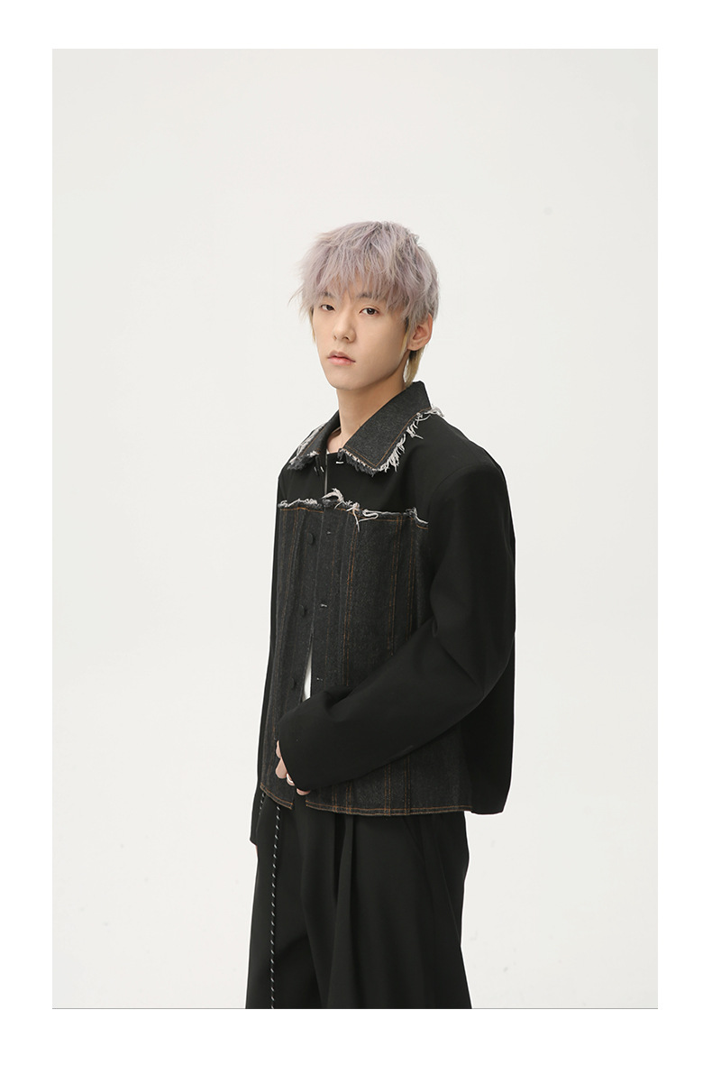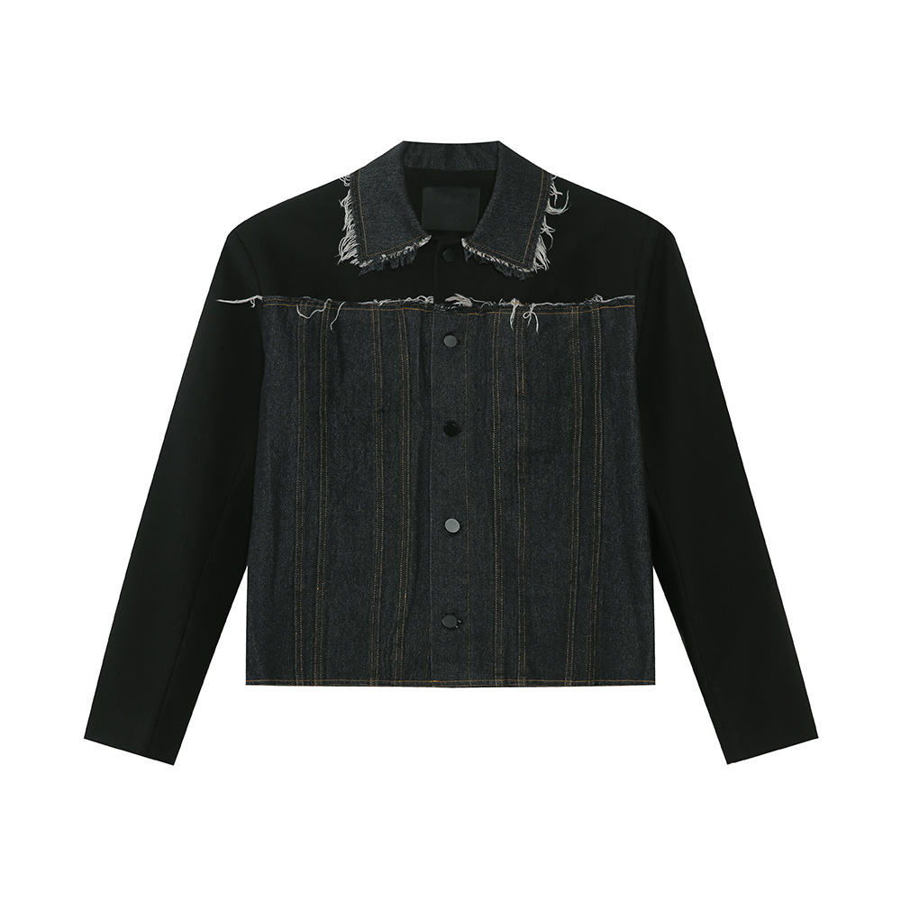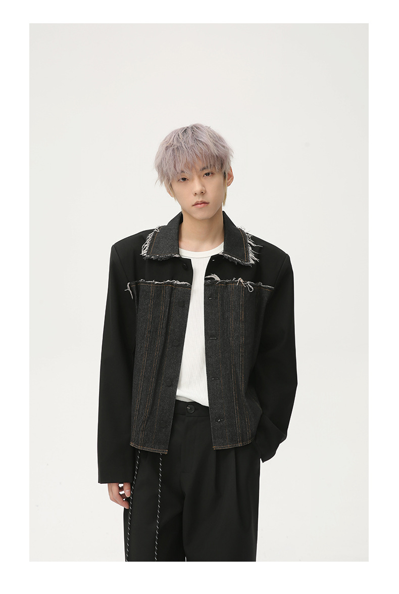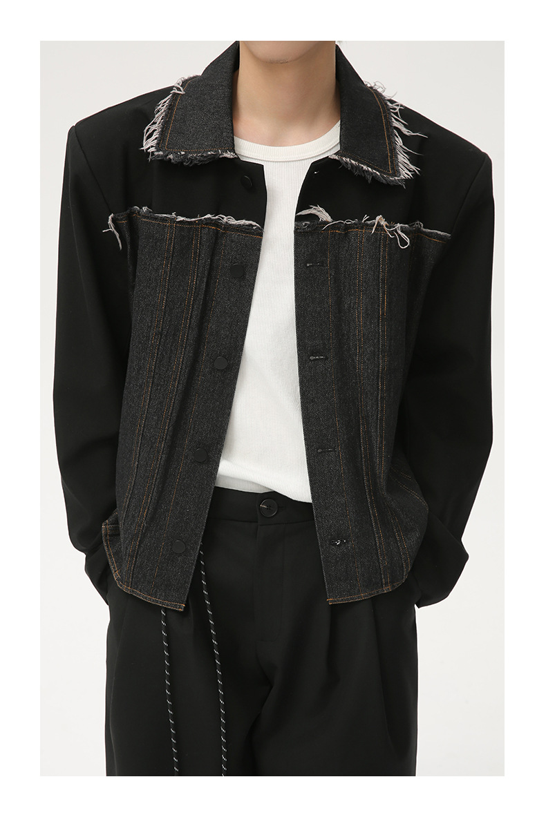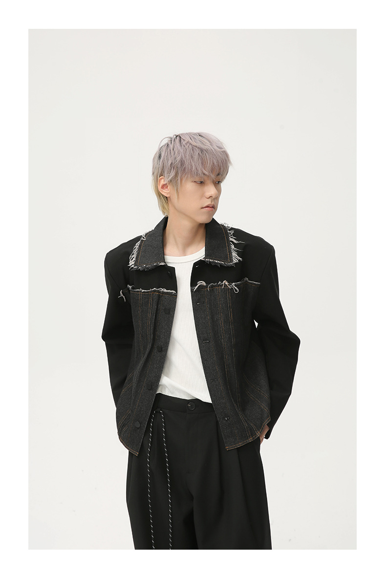 MTLCLOTHES 남성용 | 새로운 틈새 스티칭 데님 어깨 패드 손 샌딩 디자인 조커 코트 조수스토어 가기