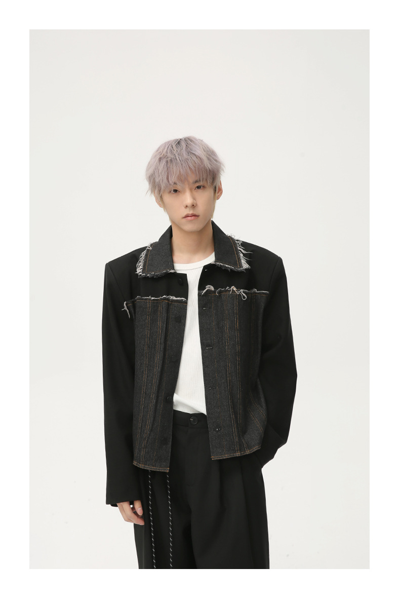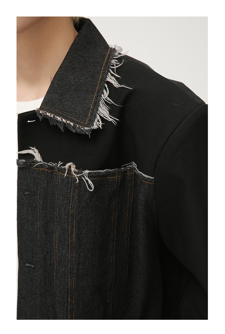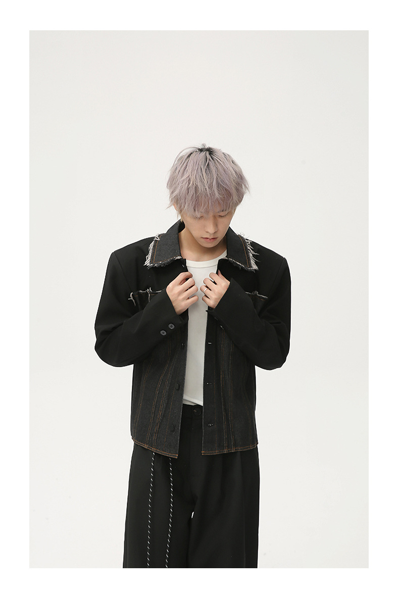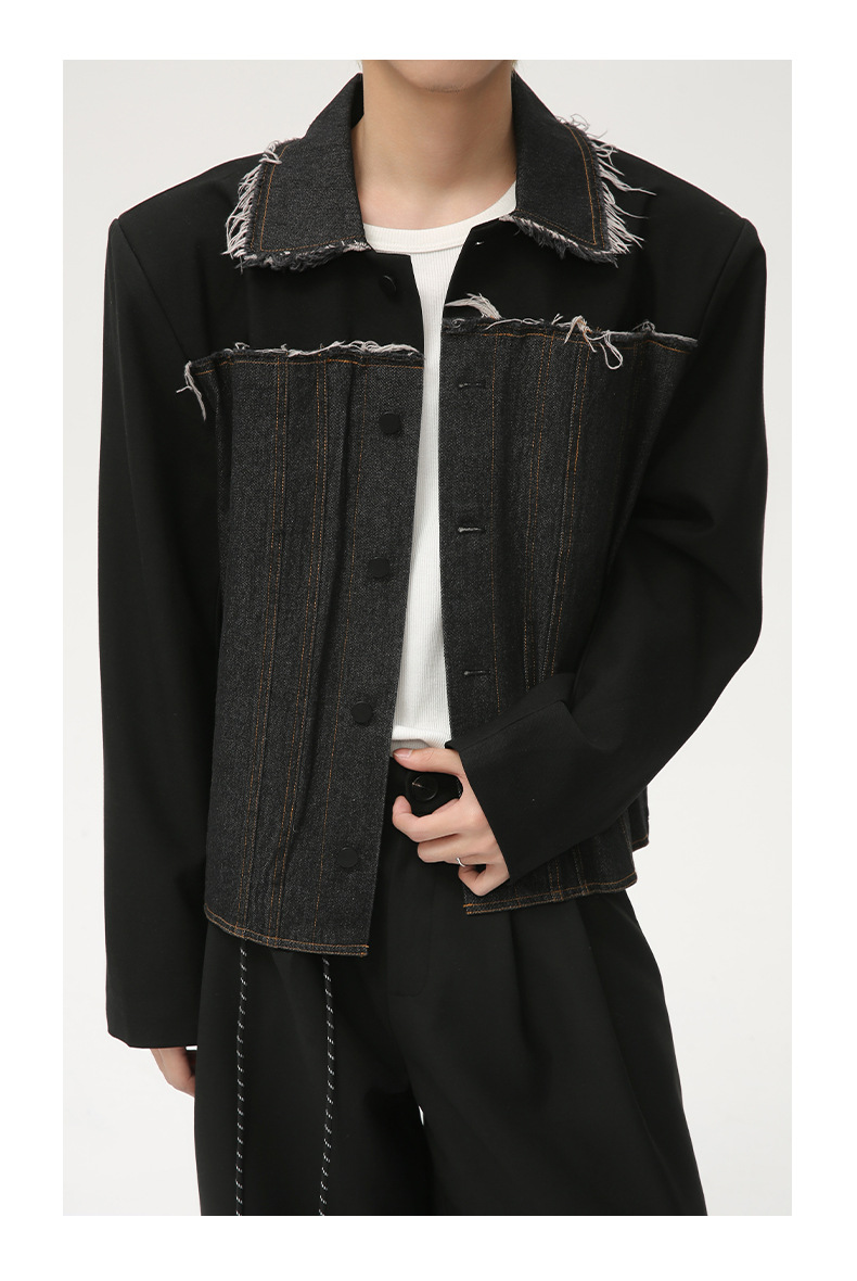 MTLCLOTHES 남성용 | 새로운 틈새 스티칭 데님 어깨 패드 손 샌딩 디자인 조커 코트 조수스토어 가기
