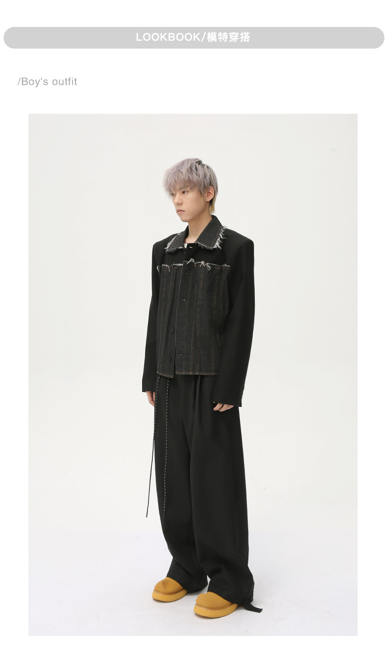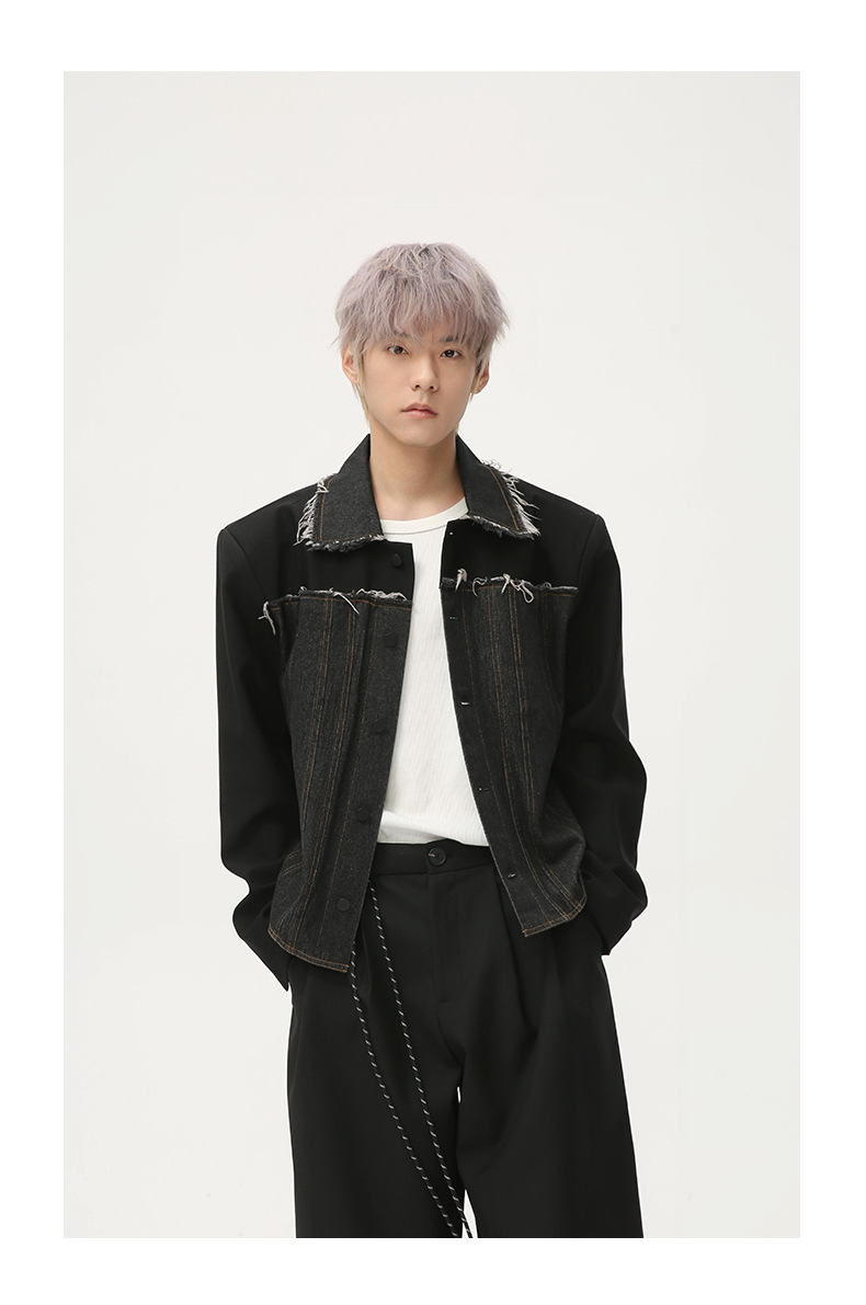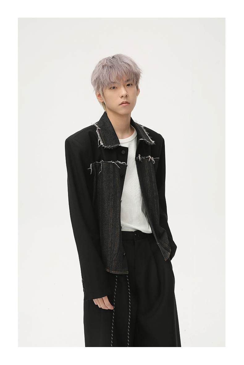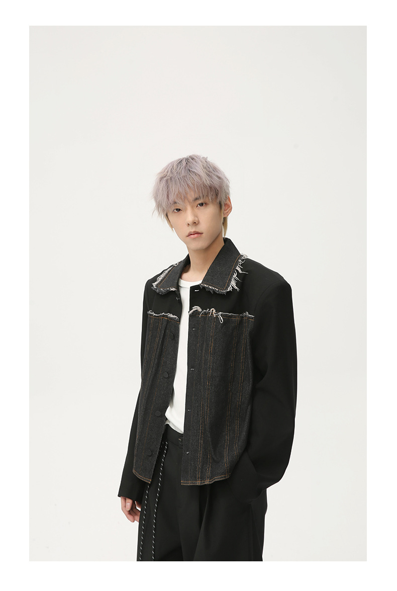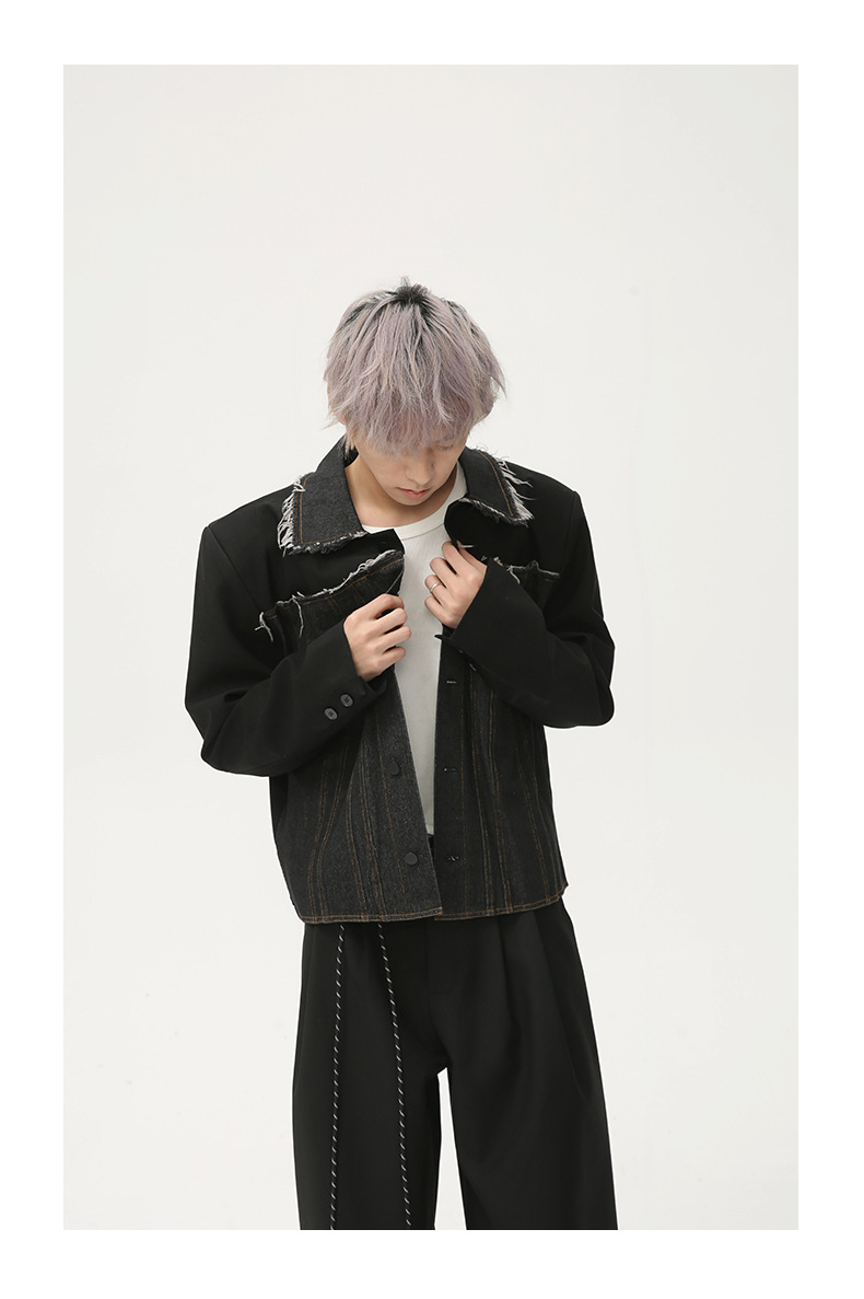 MTLCLOTHES 남성용 | 새로운 틈새 스티칭 데님 어깨 패드 손 샌딩 디자인 조커 코트 조수스토어 가기