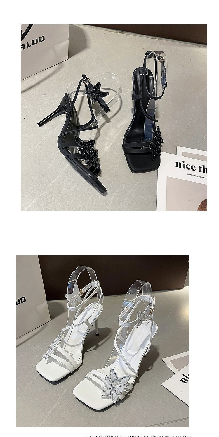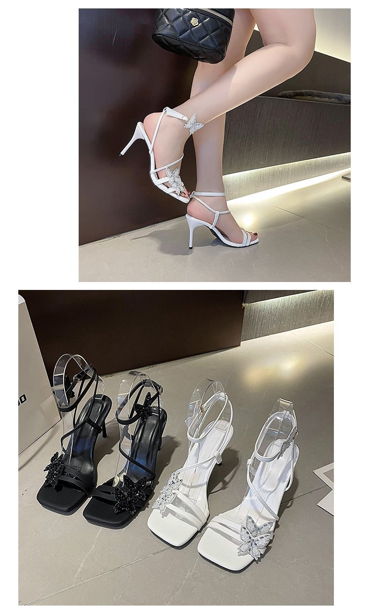 여성을위한 활 라인스톤 스트랩 우아한 샌들 2025 여름 새로운 스타일 아우터웨어 여성을위한 슈퍼 아름다운 섹시한 스틸레토 힐 하이힐